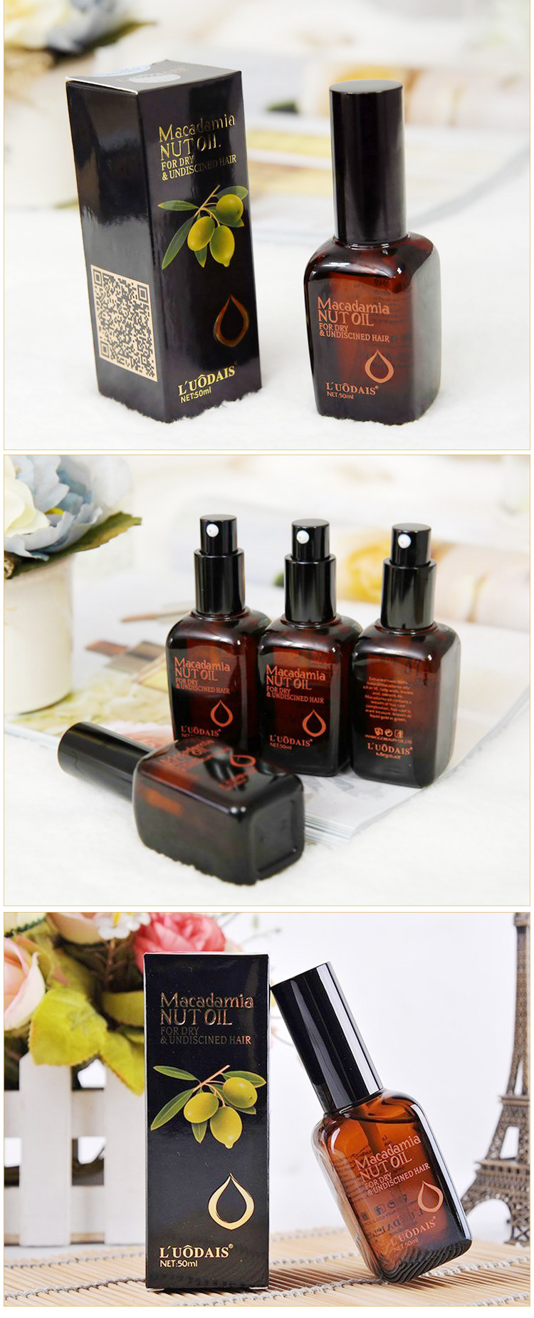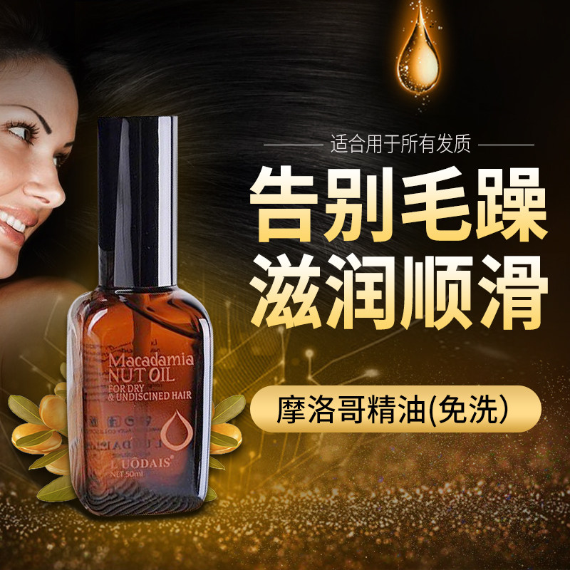 Флакон средства для ухода за волосами без помощи рук с марокканским эфирным маслом, которое улучшает состояние сухих и вьющихся волос и восстанавливает их для любых волос.