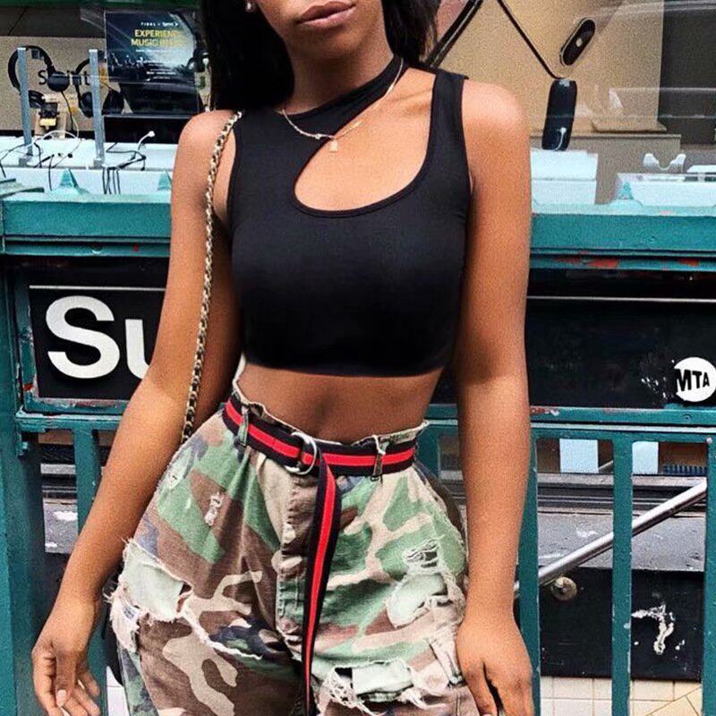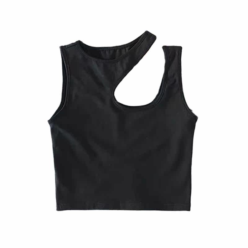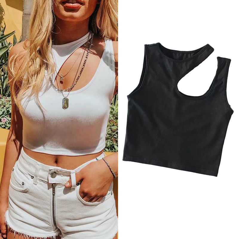 Майка, короткая приятная телу футболка без рукавов, высокая талия, для маленькой груди