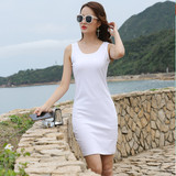 Майка, летнее платье-комбинация, цветная длинная юбка, платье, средней длины, в корейском стиле