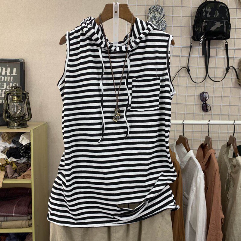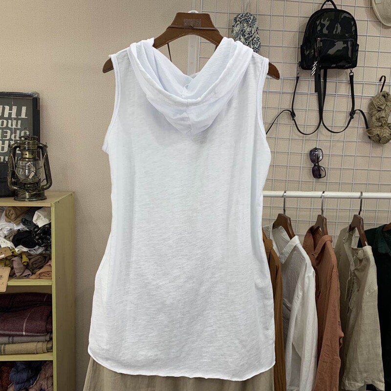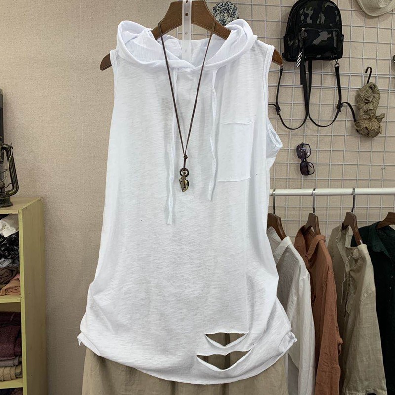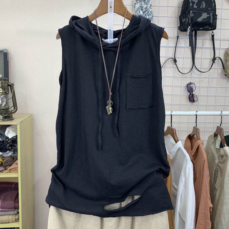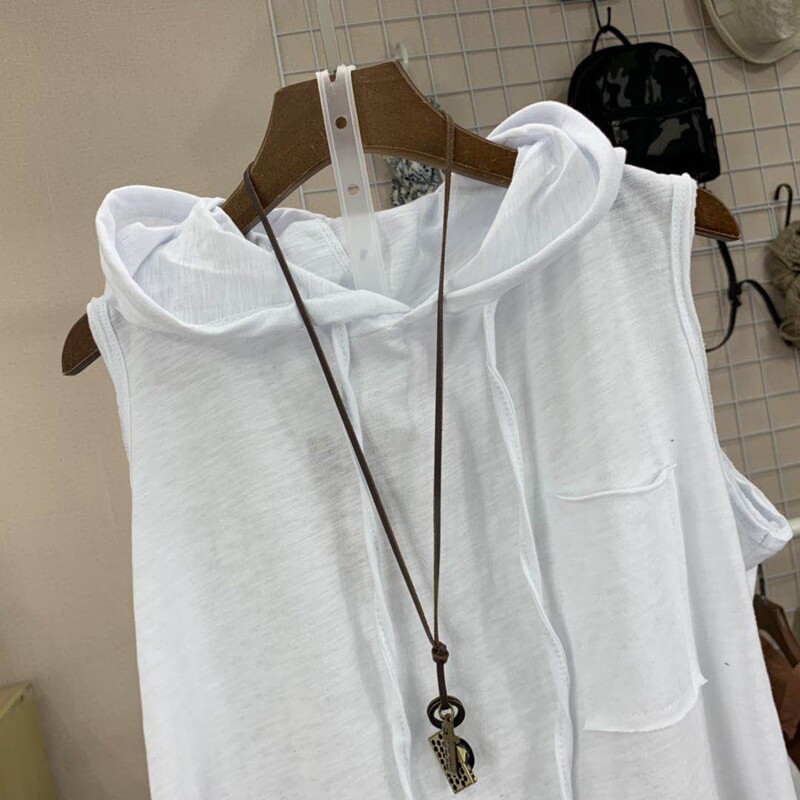 Летний бамбуковый базовый приятный телу жилет с капюшоном без рукавов, в корейском стиле, свободный крой, большой размер