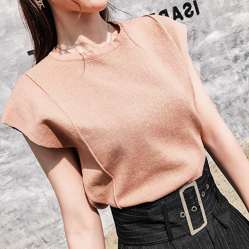 Трикотажный жилет, базовая майка топ, короткая футболка без рукавов, в корейском стиле, короткий рукав