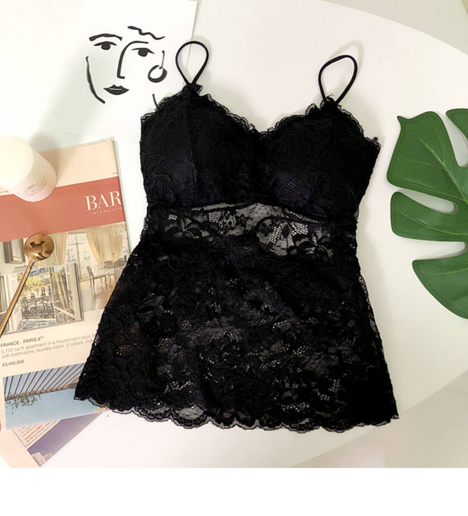 Кружевная майка топ, эластичные сексуальные вставки в бюстгальтер, V-образный вырез, стиль
