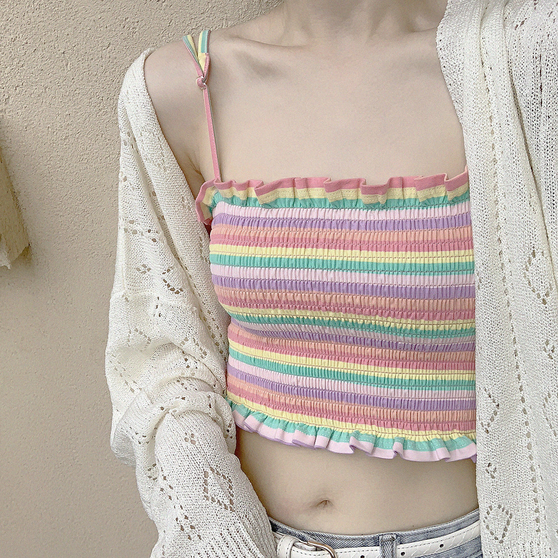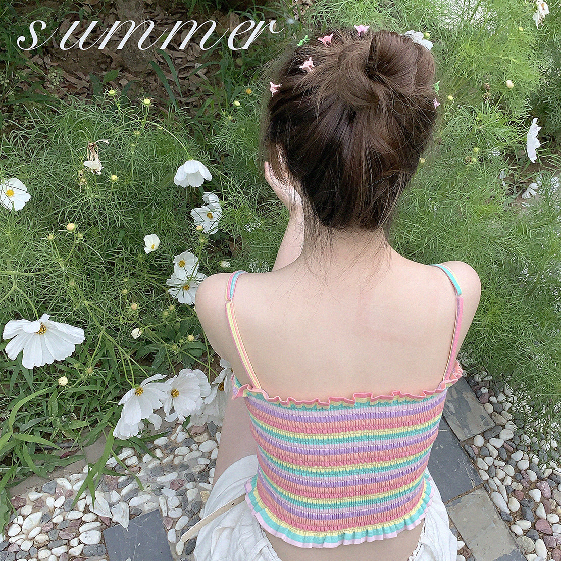 *Основной универсальный стиль летняя девочка Rainbow Stripes Simake Simak