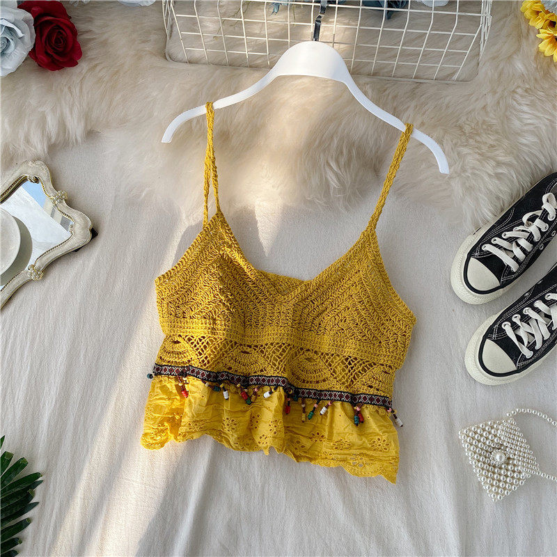 Короткая трикотажная сексуальная базовая приятная телу майка топ для путешествий, стиль бохо, для маленькой груди