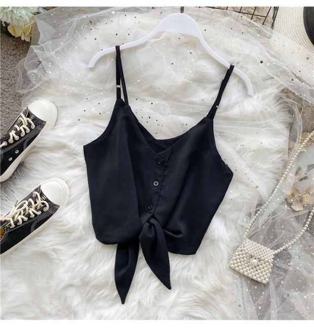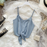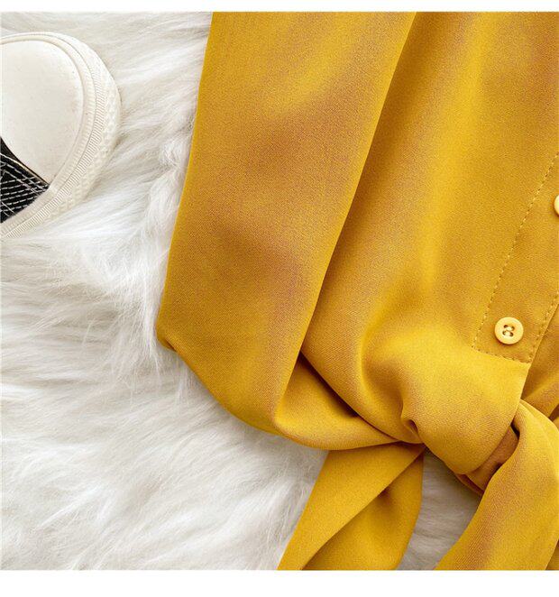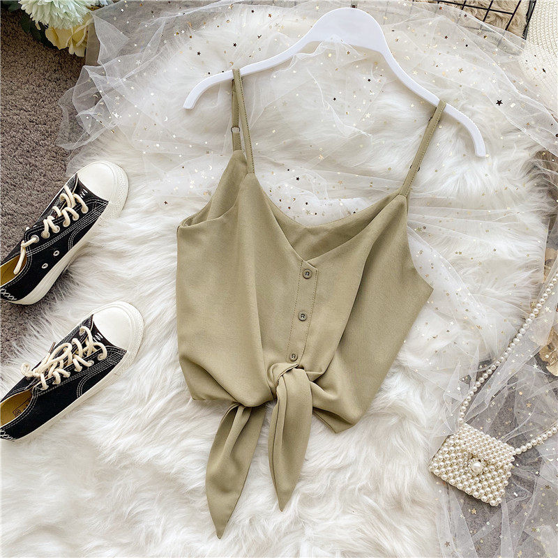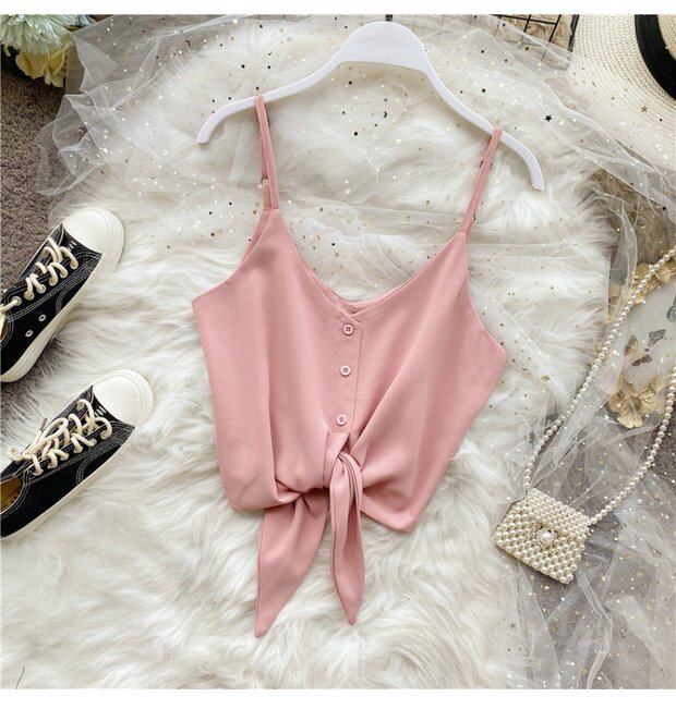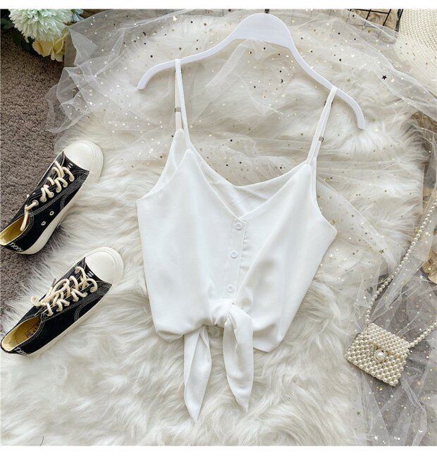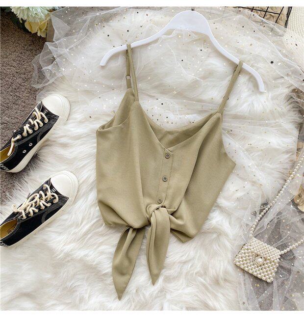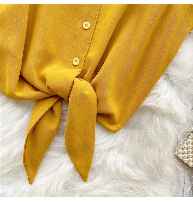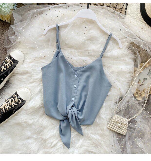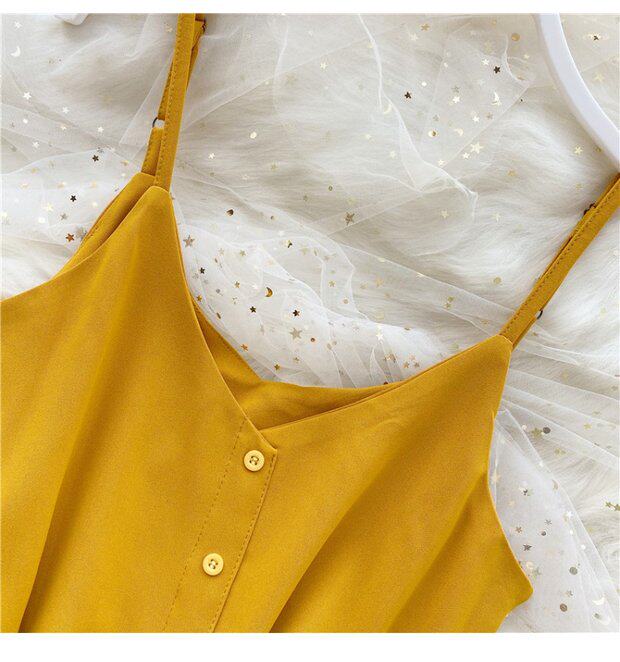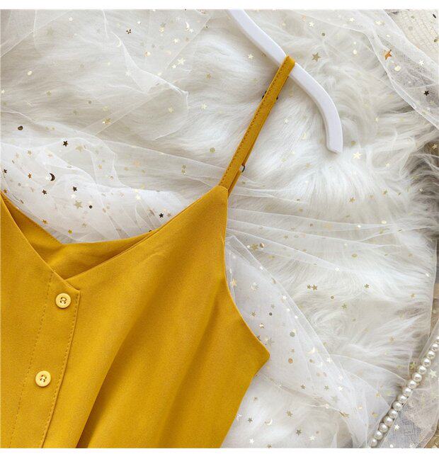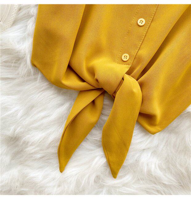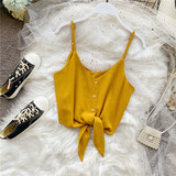 Летняя одежда, короткая желтая шифоновая майка топ, высокая талия