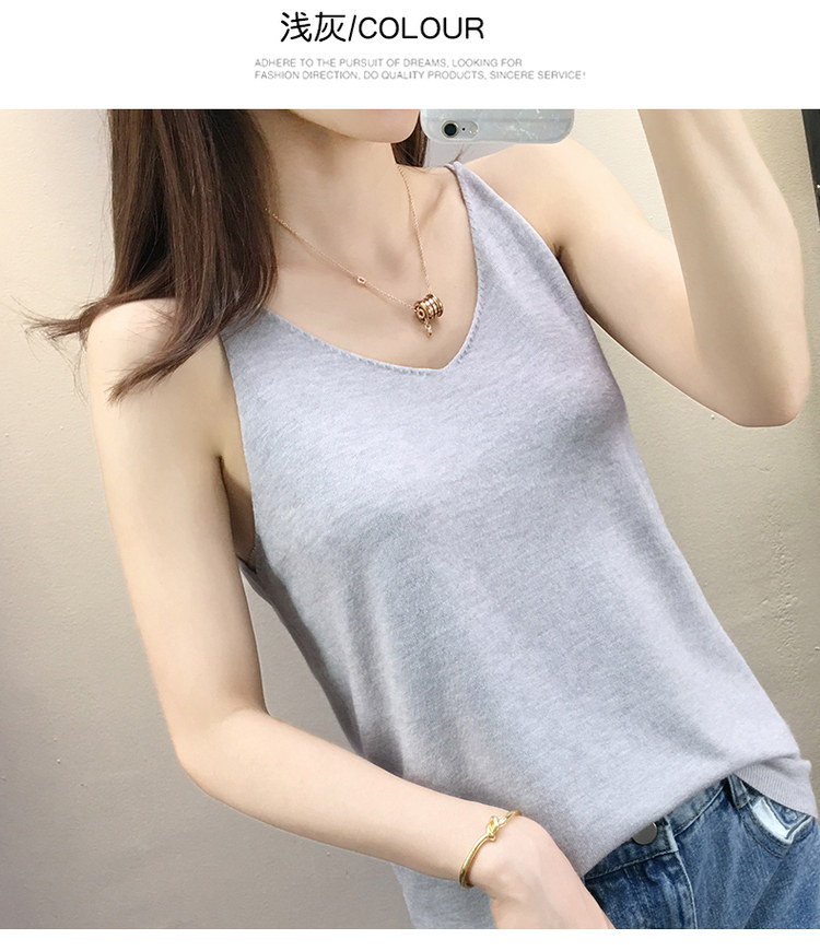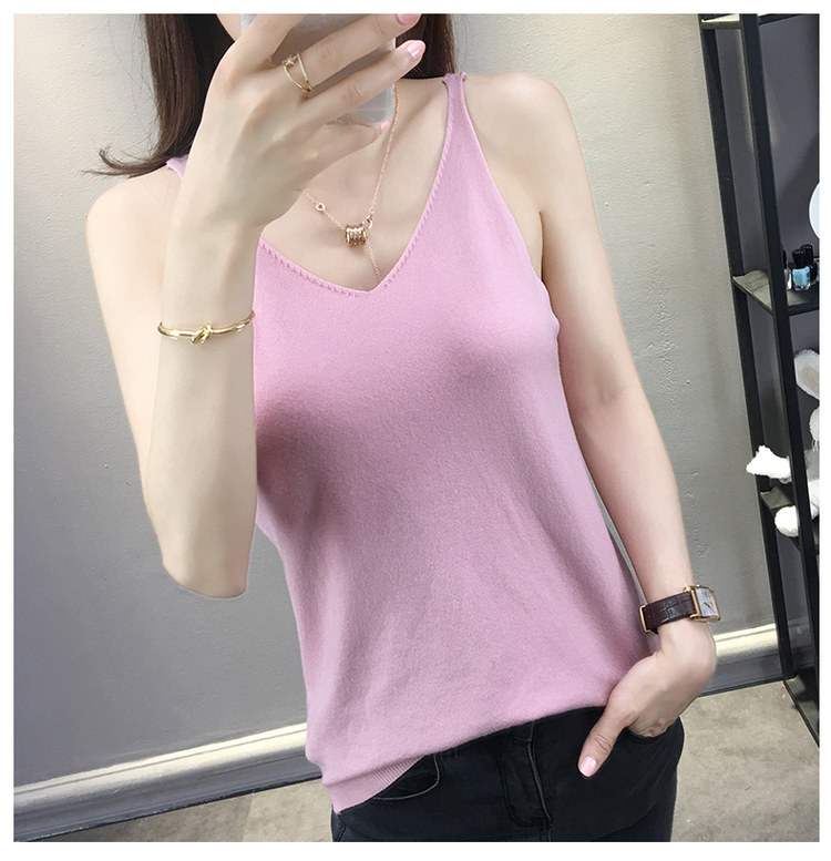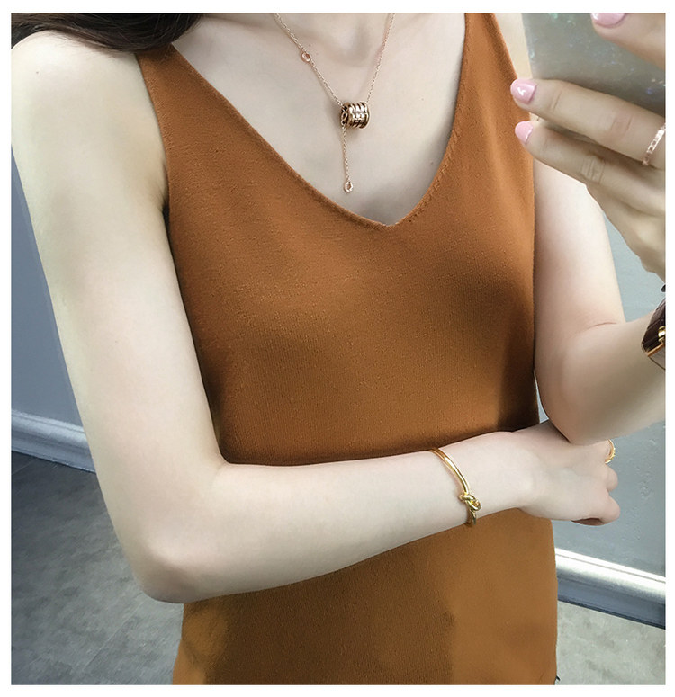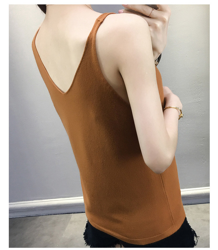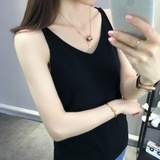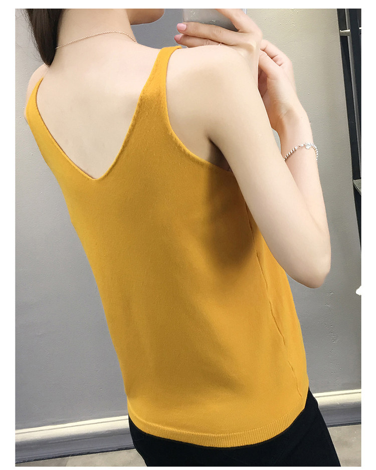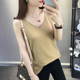 Тонкий кашемировый жилет, летняя трикотажная сексуальная майка топ, V-образный вырез, для маленькой груди, облегающий крой