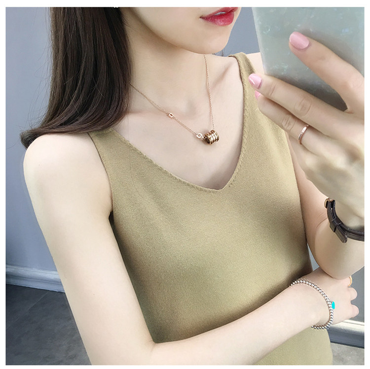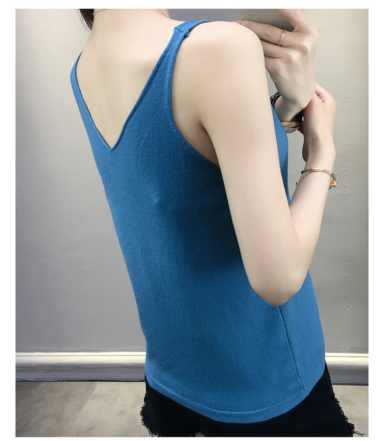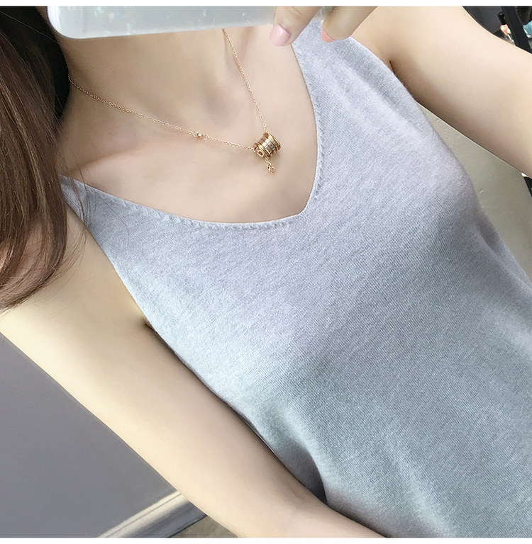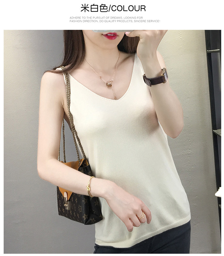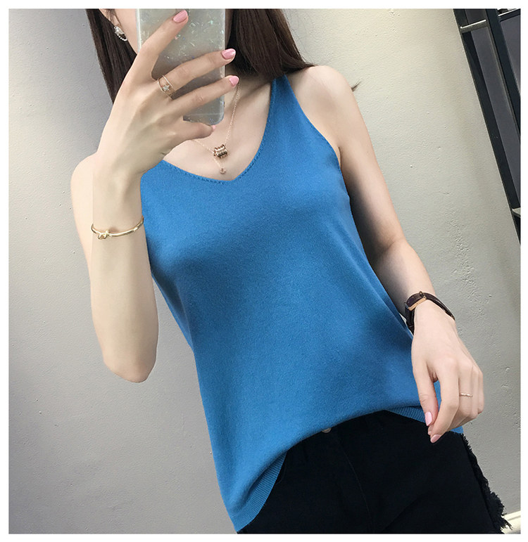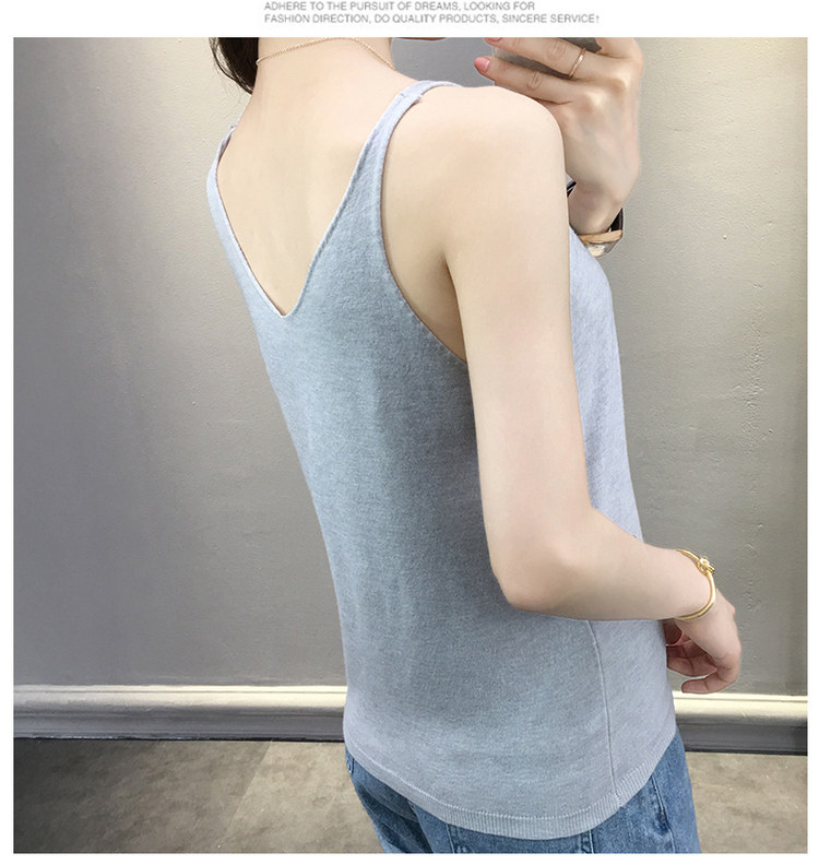 Тонкий кашемировый жилет, летняя трикотажная сексуальная майка топ, V-образный вырез, для маленькой груди, облегающий крой