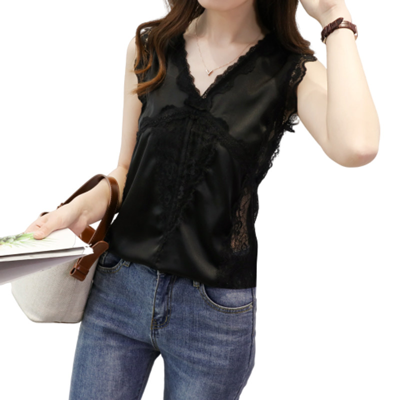 Шелковый топ с чашечками, кружевной жилет без рукавов, футболка, европейский стиль, большой размер