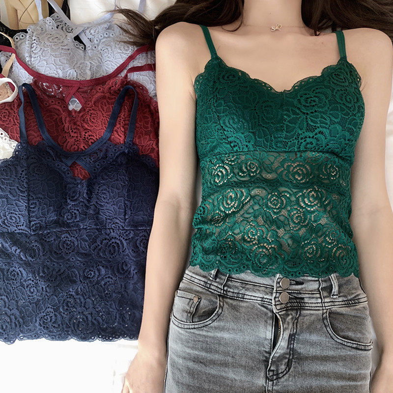 Сексуальный кружевной топ с чашечками, базовая майка топ, в корейском стиле, для маленькой груди, облегающий крой