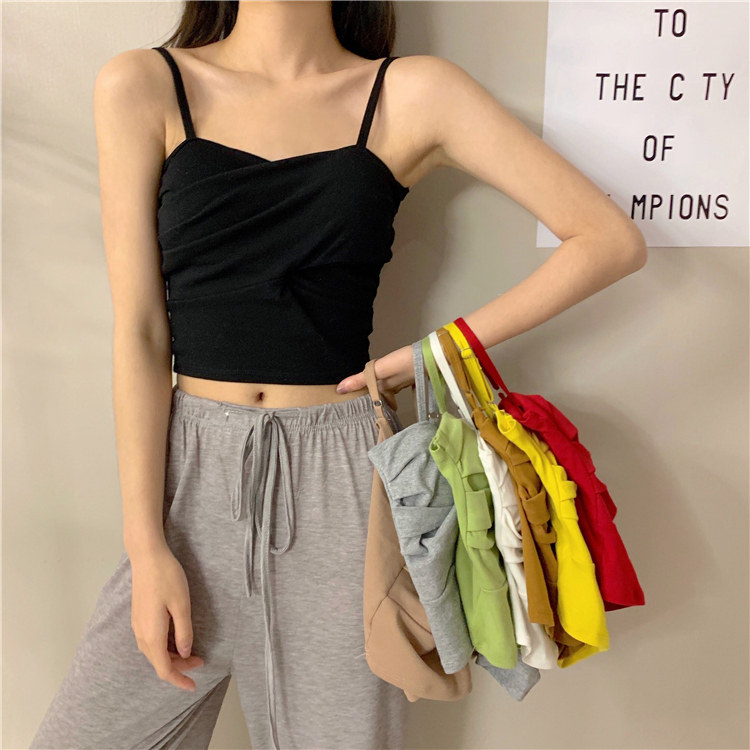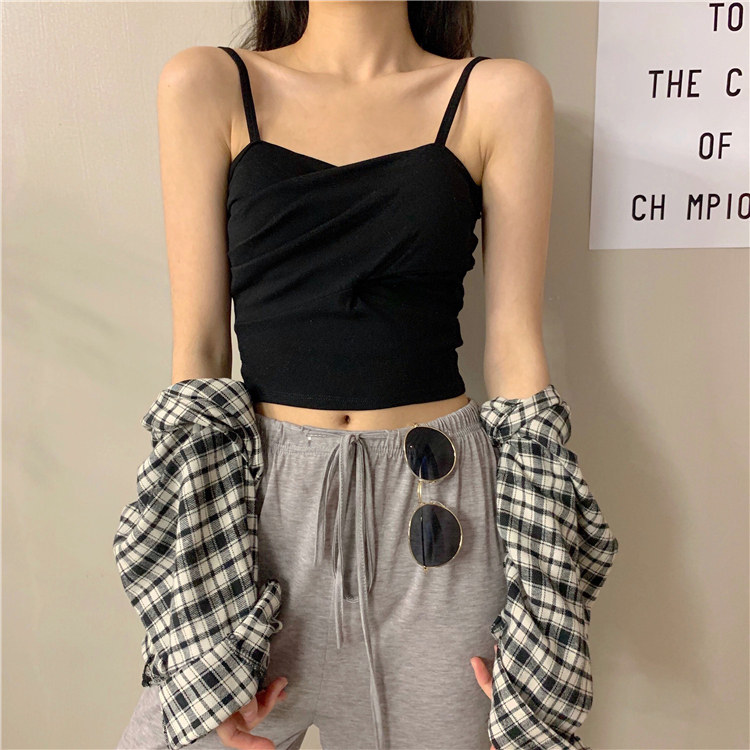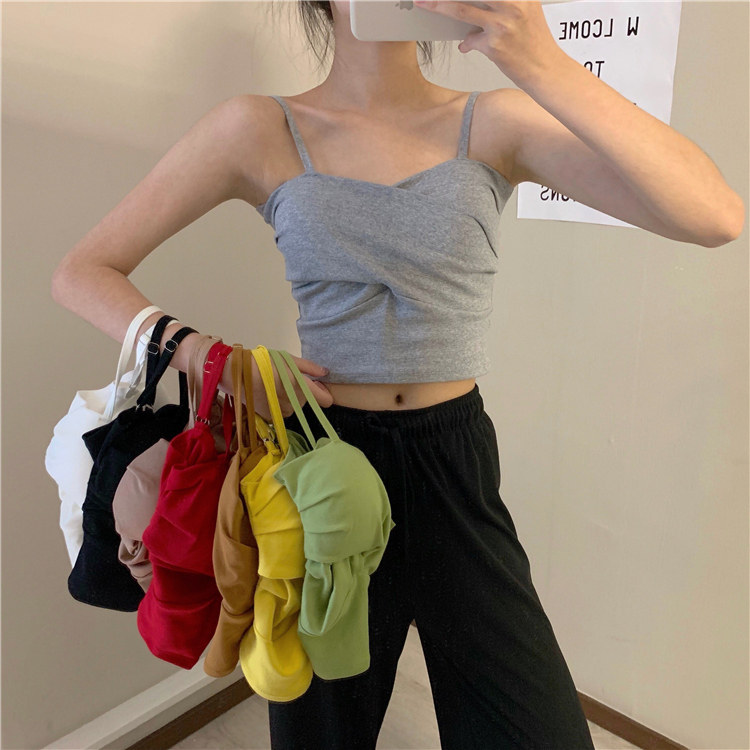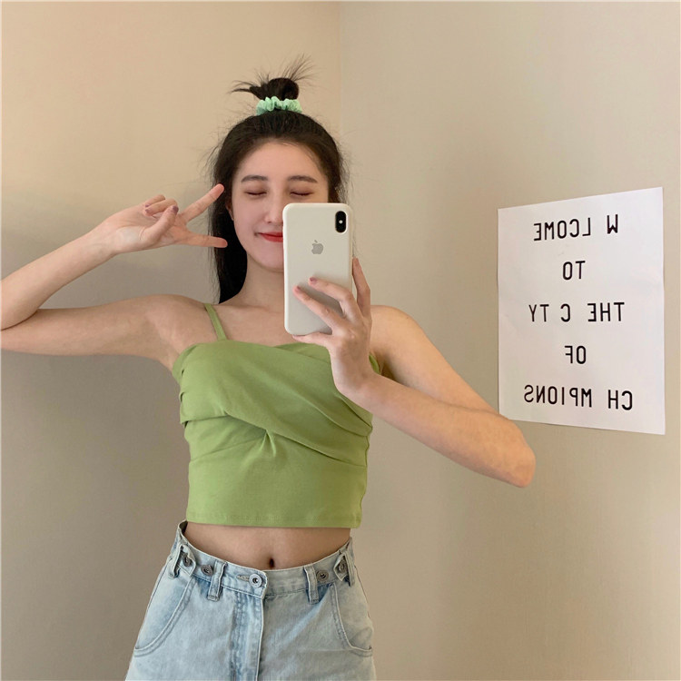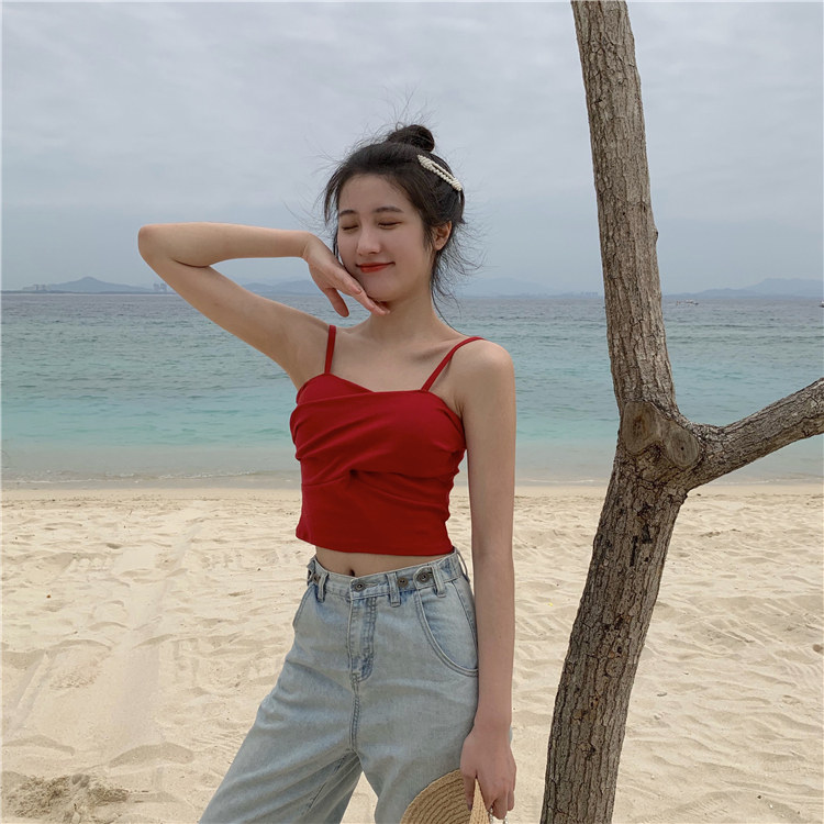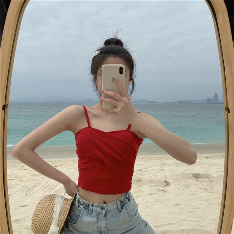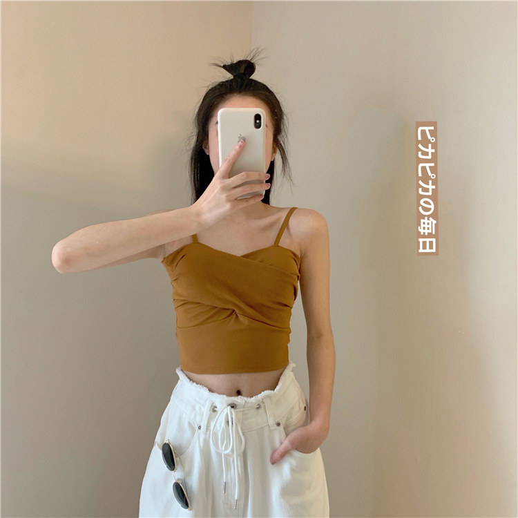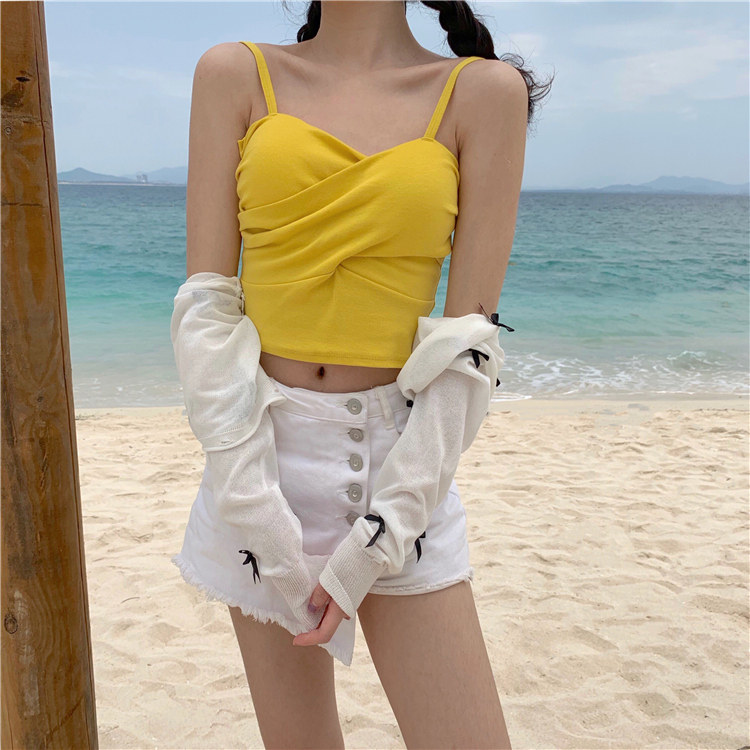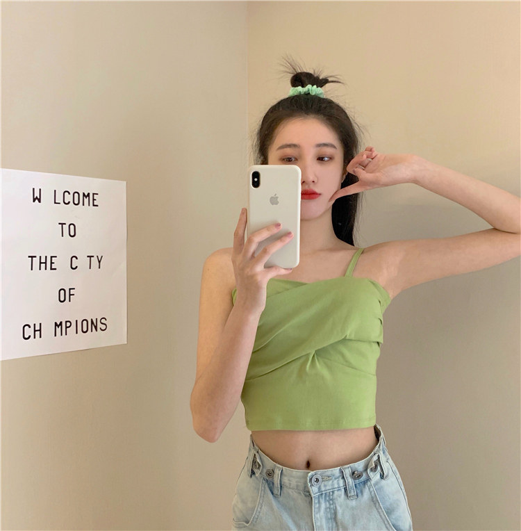 Летний короткий дизайнерский топ с чашечками, популярно в интернете, в корейском стиле, тренд сезона, облегающий крой