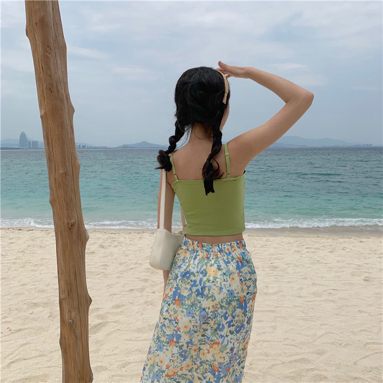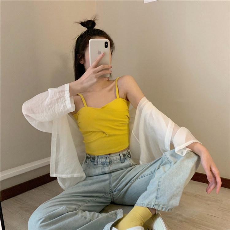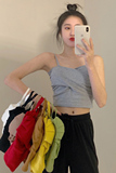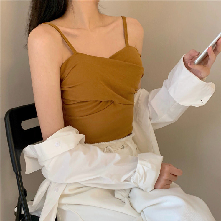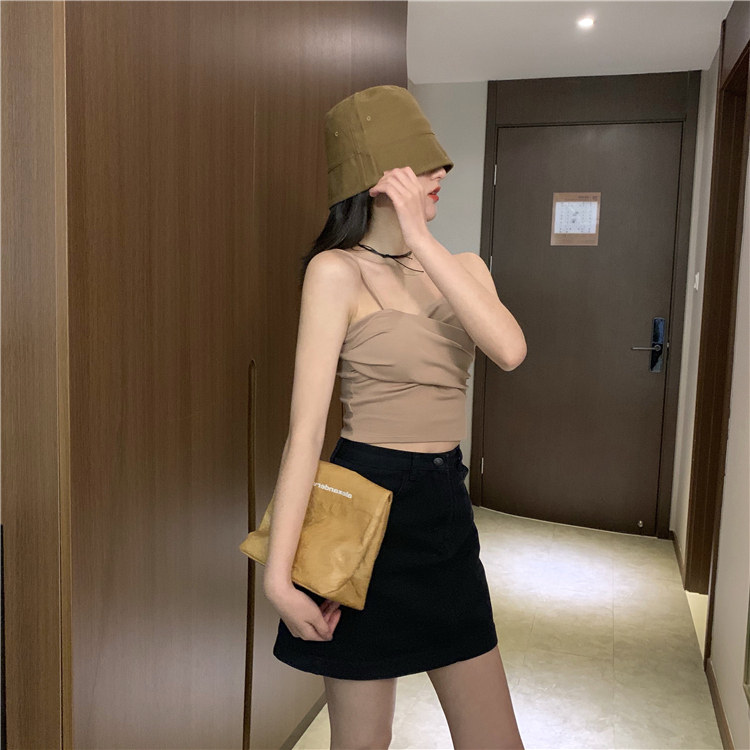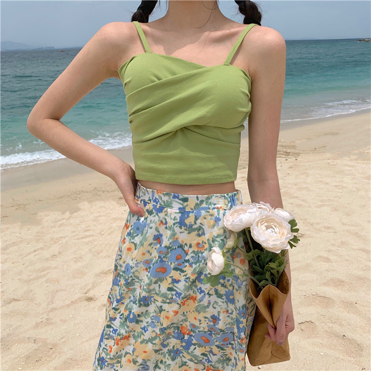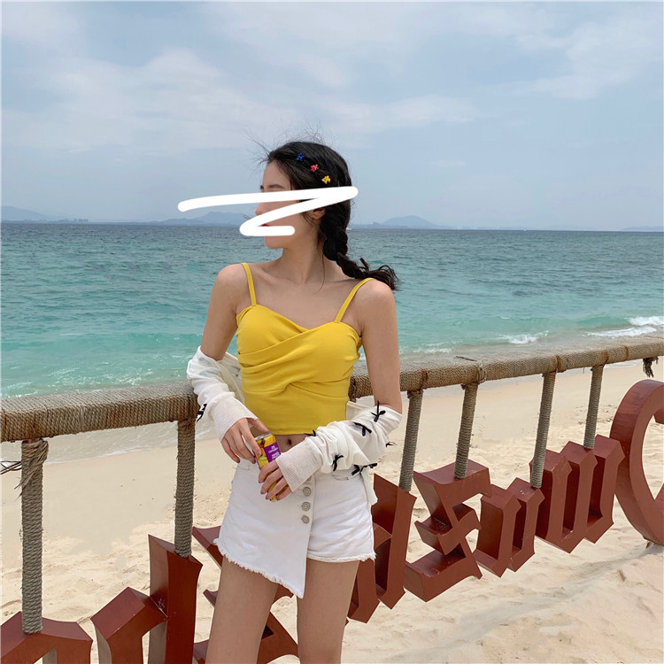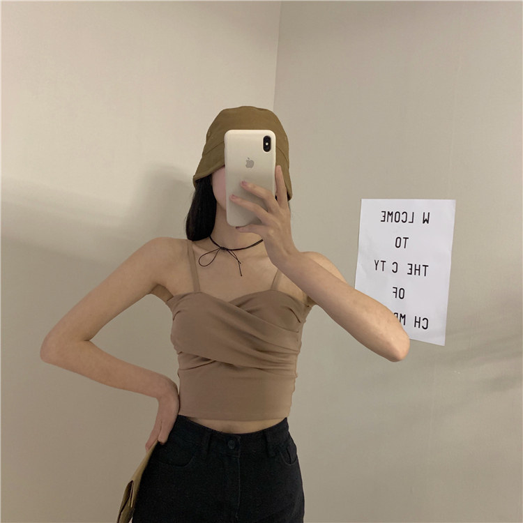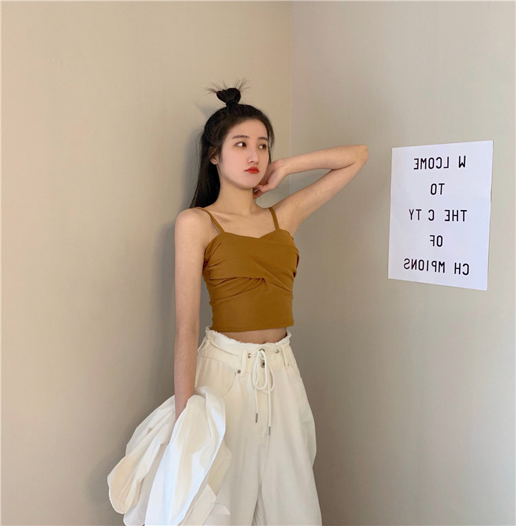 Летний короткий дизайнерский топ с чашечками, популярно в интернете, в корейском стиле, тренд сезона, облегающий крой
