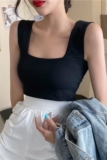 Tide, бретели, топ с чашечками, черная короткая сексуальная базовая футболка без рукавов