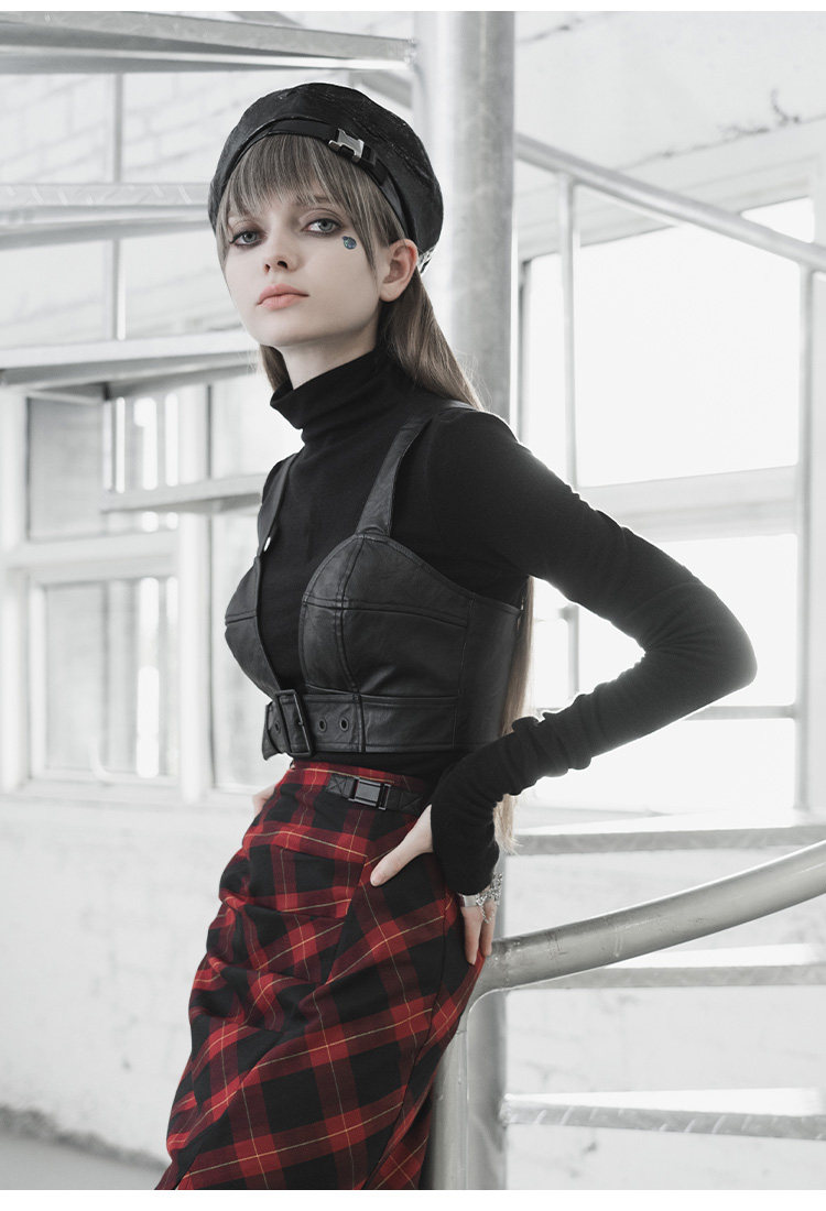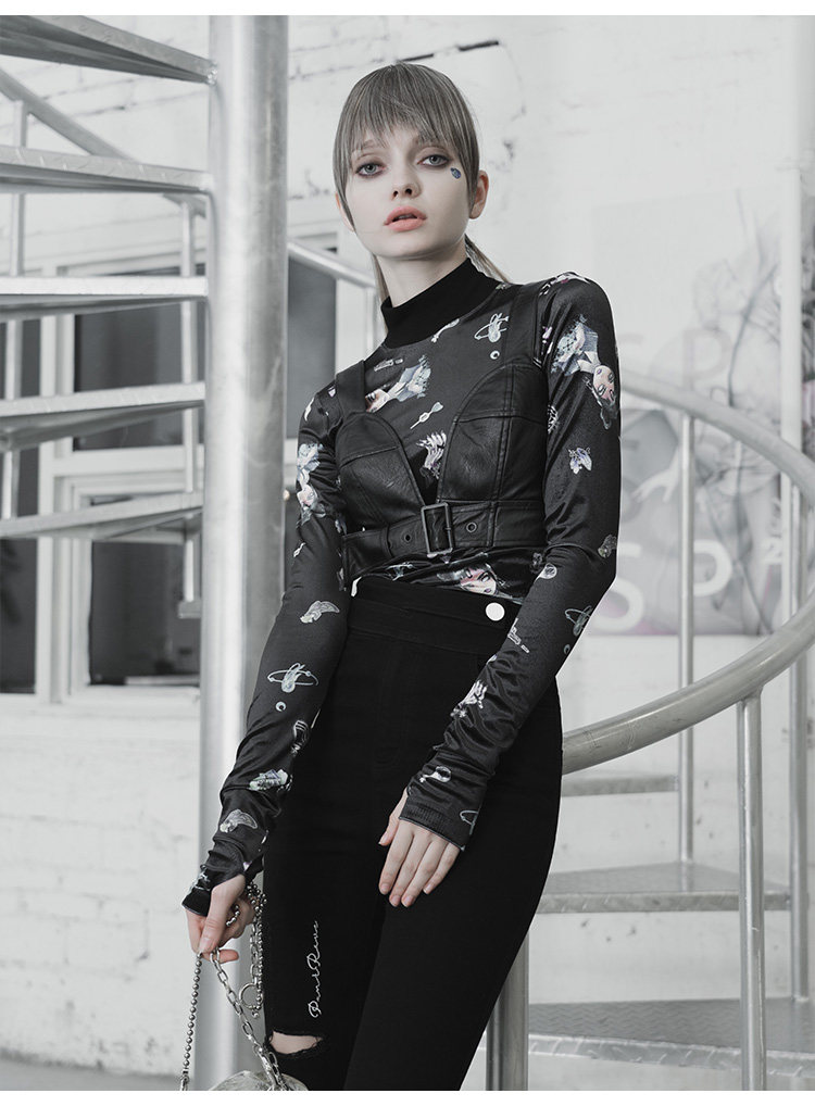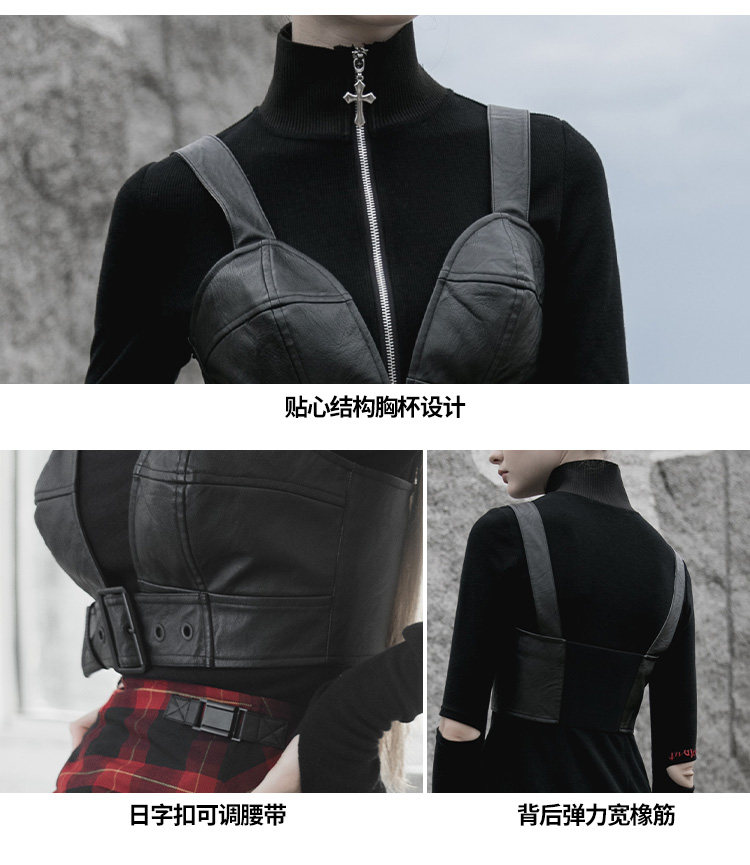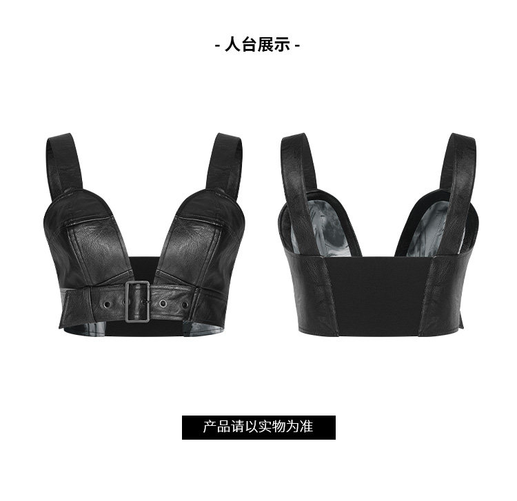 Сексуальная черная полиуретановая майка топ без рукавов, дизайнерская демисезонная майка пуш-ап, в стиле панк, эффект подтяжки, европейский стиль, тренд сезона