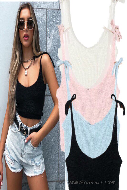 Tide, сексуальная короткая трикотажная майка топ, европейский стиль, V-образный вырез, высокая талия