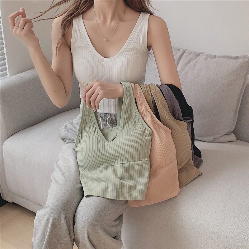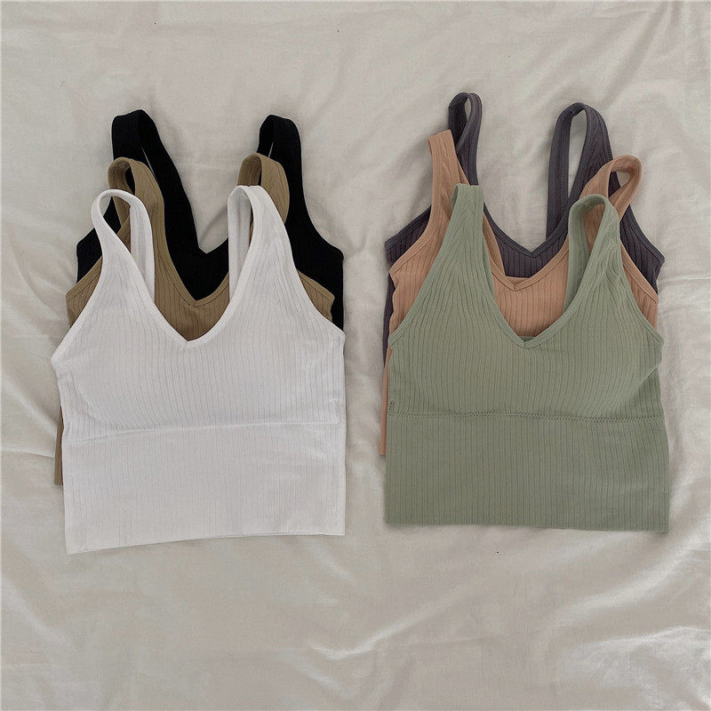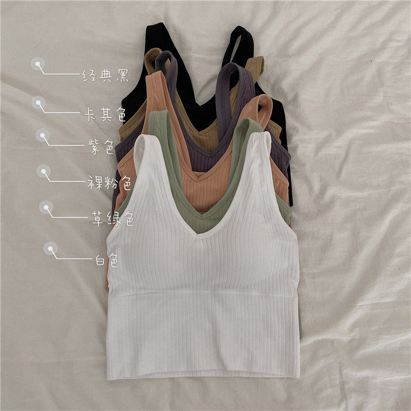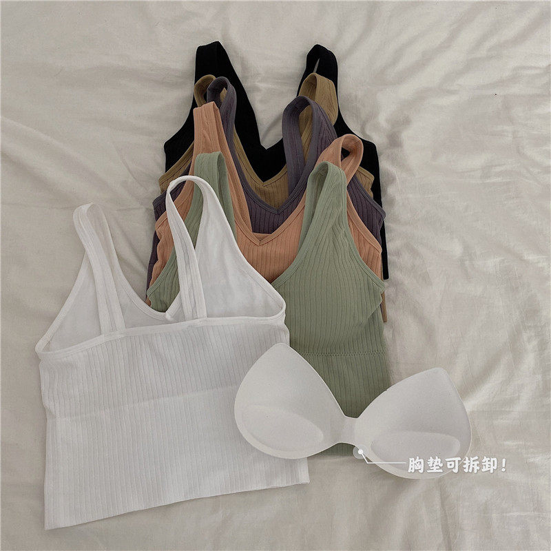 Летние съемные вставки в бюстгальтер, топ без лямок, короткий бюстгальтер-топ, сезон 2021, в корейском стиле, V-образный вырез
