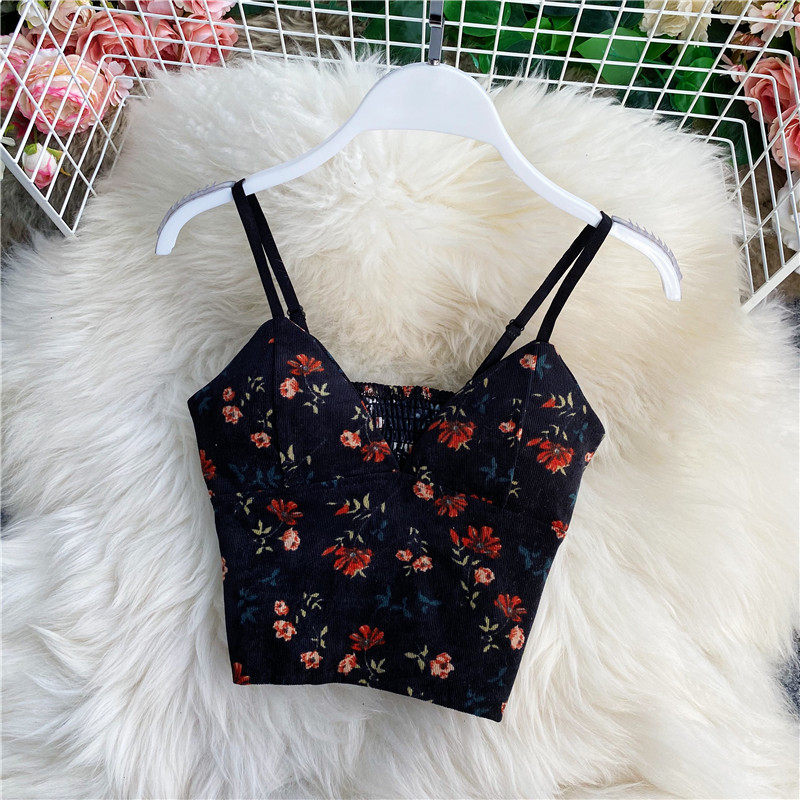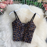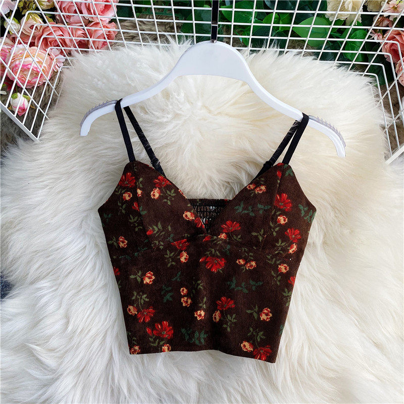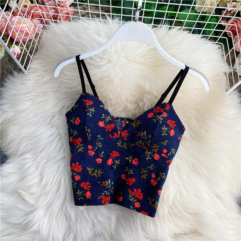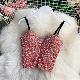 Короткий топ без лямок, майка топ без рукавов, цветочный принт, V-образный вырез, облегающий крой, эффект подтяжки