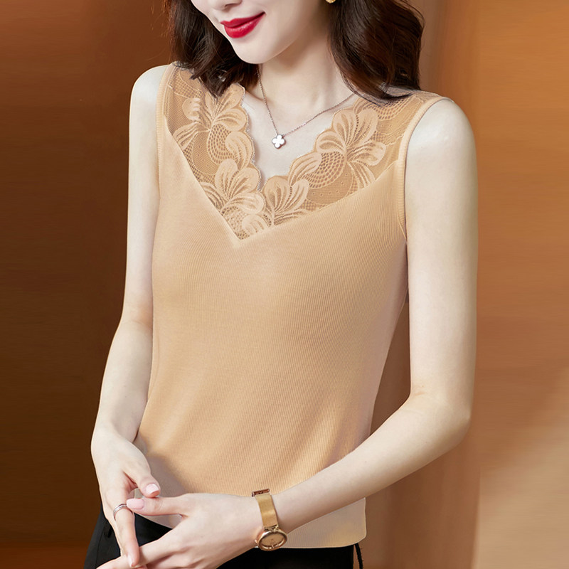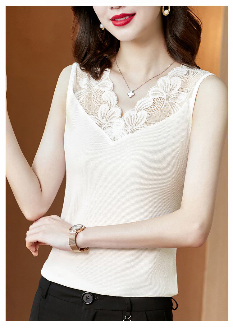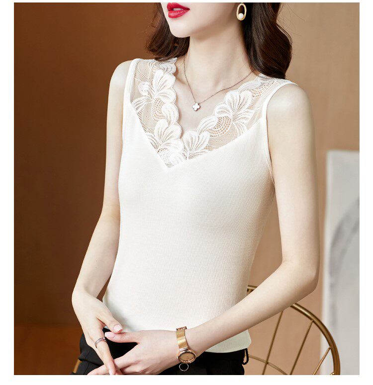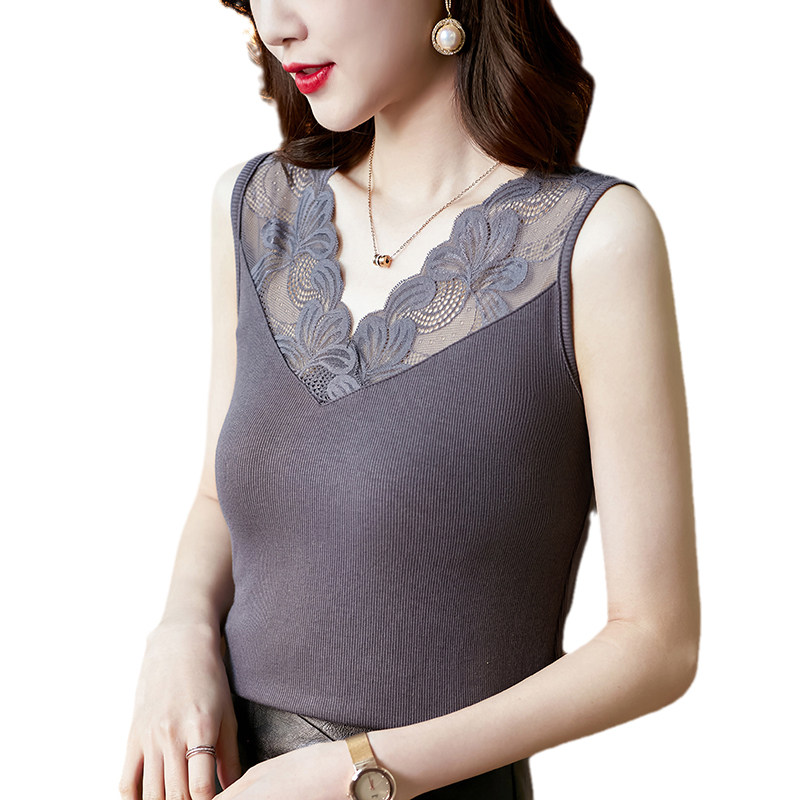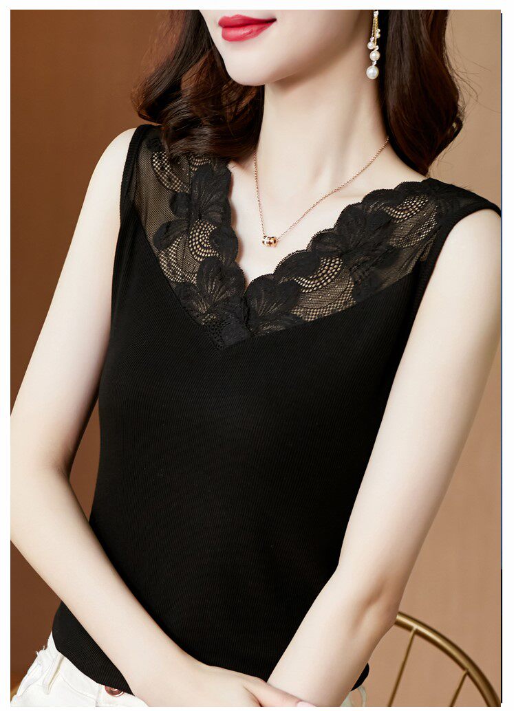 Трикотажная короткая кружевная базовая майка топ, V-образный вырез, французский стиль