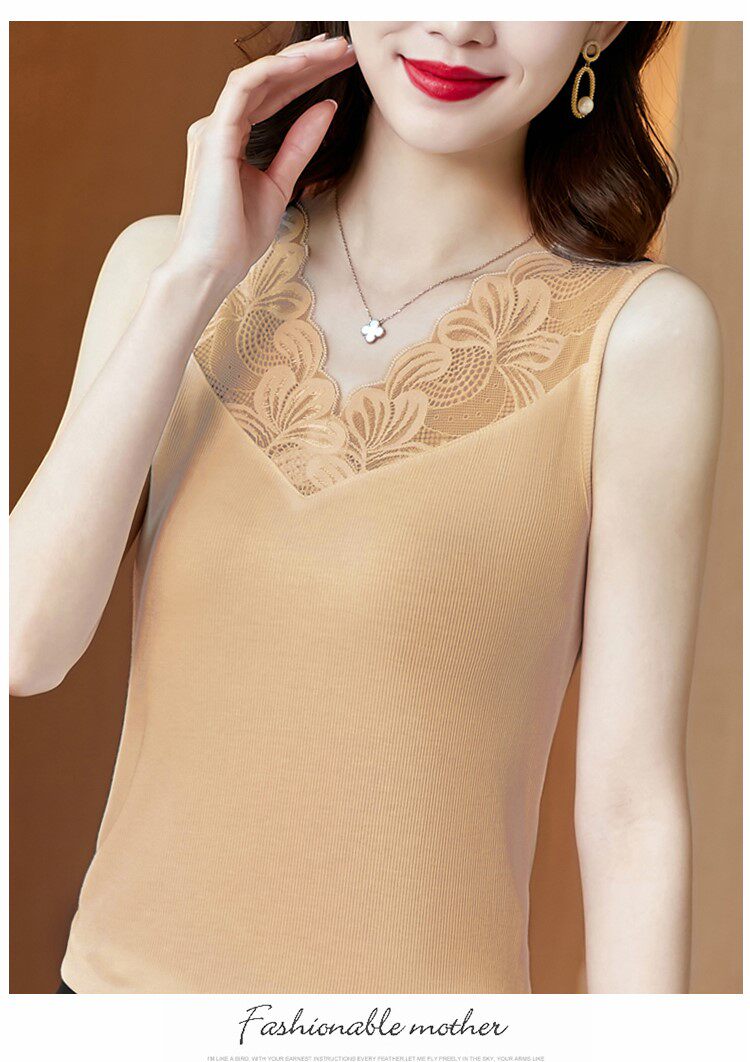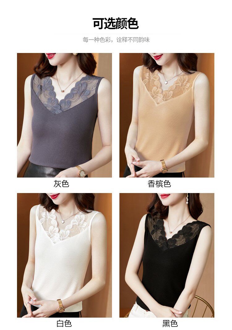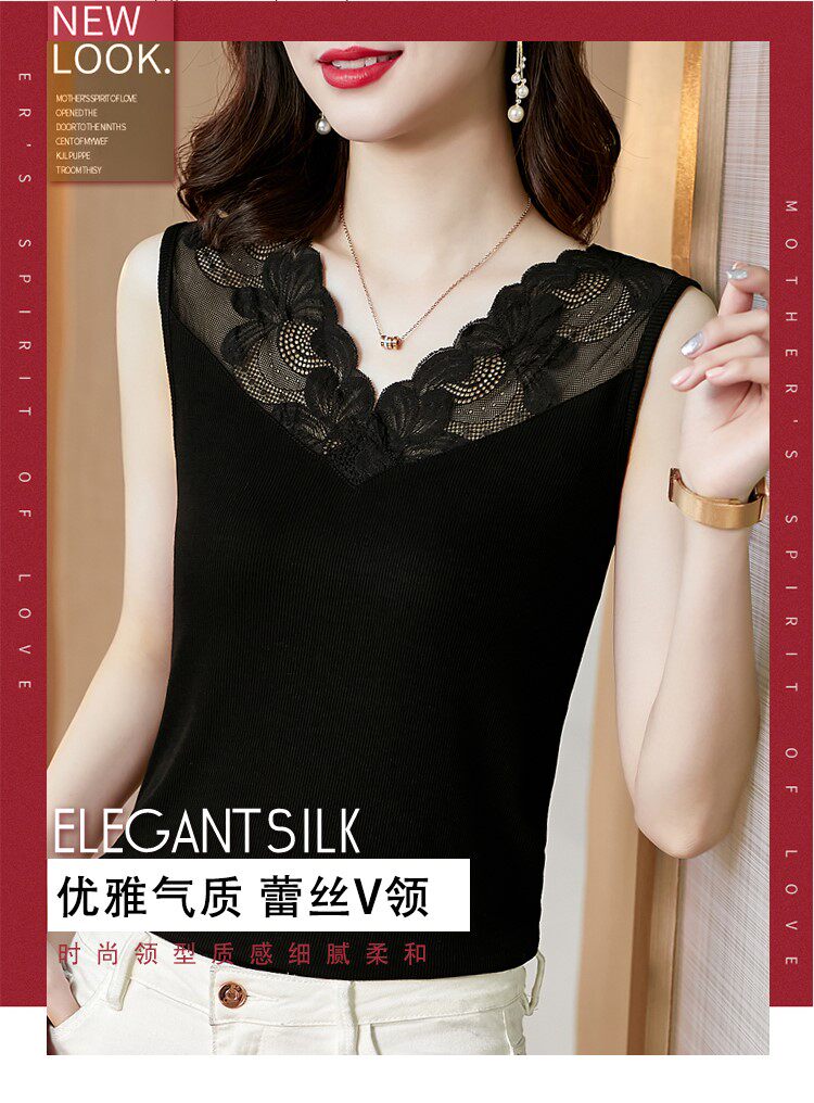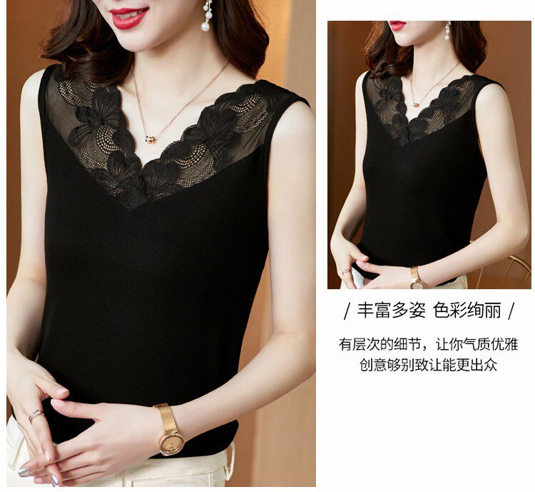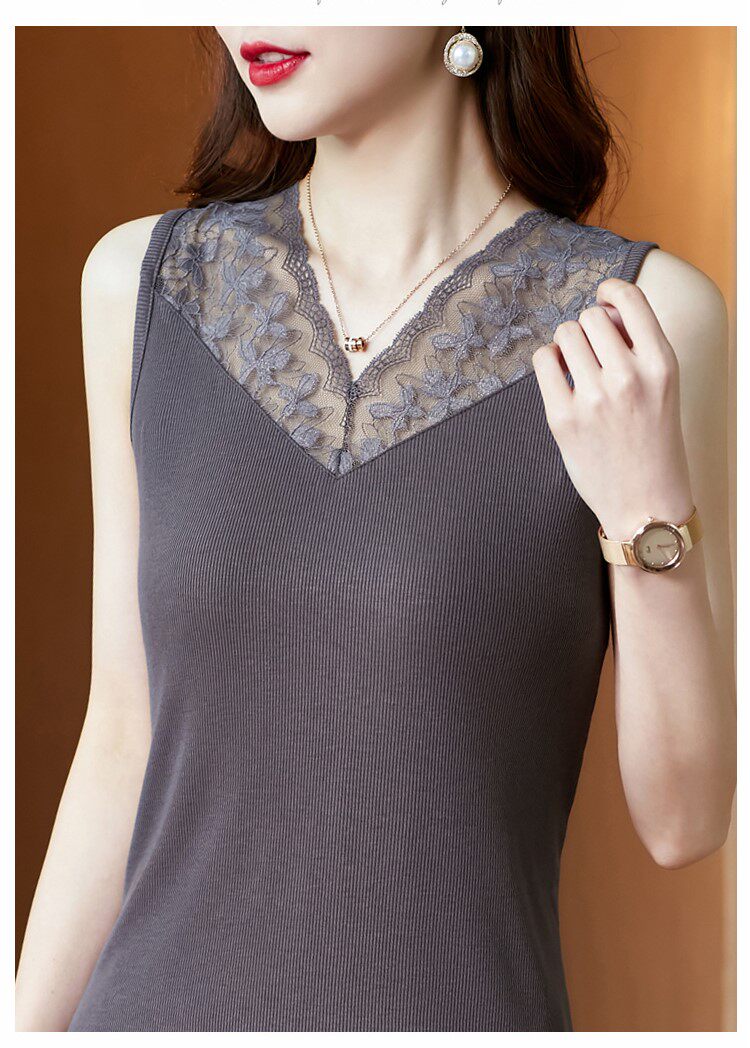 Трикотажная короткая кружевная базовая майка топ, V-образный вырез, французский стиль