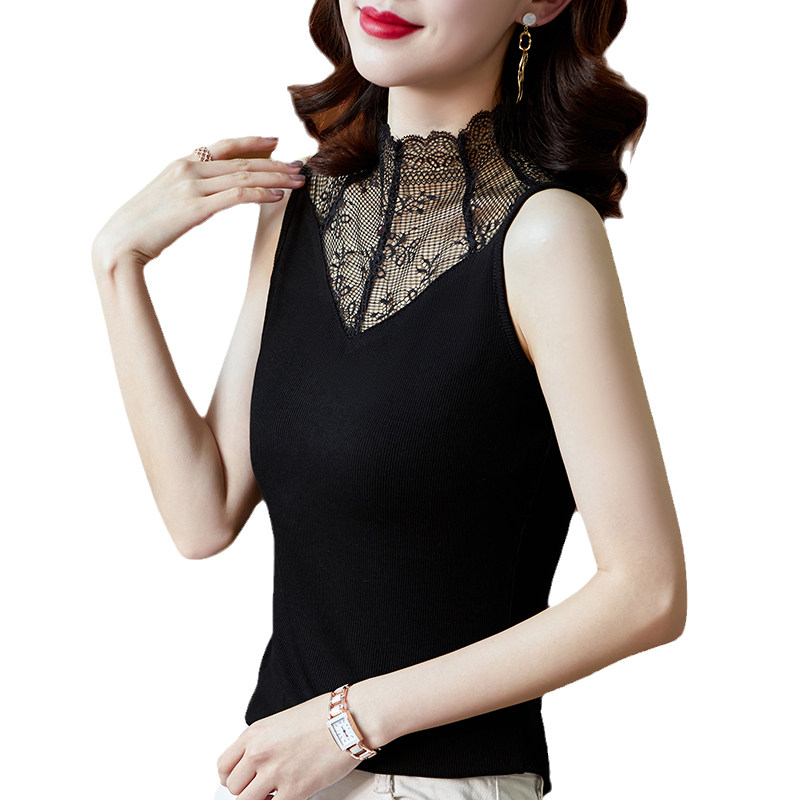 Черная майка топ, короткое кружевное дизайнерское базовое белье для повседневной носки, тренд сезона, французский стиль