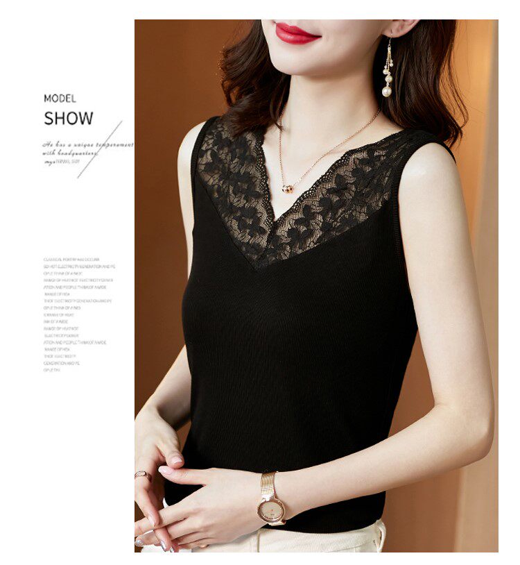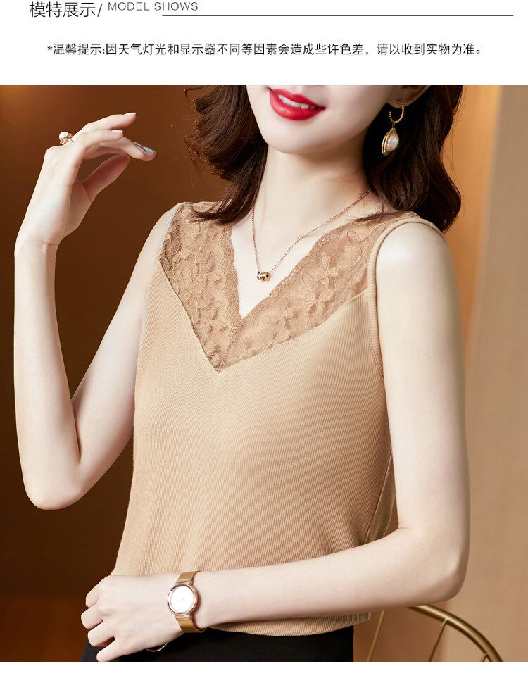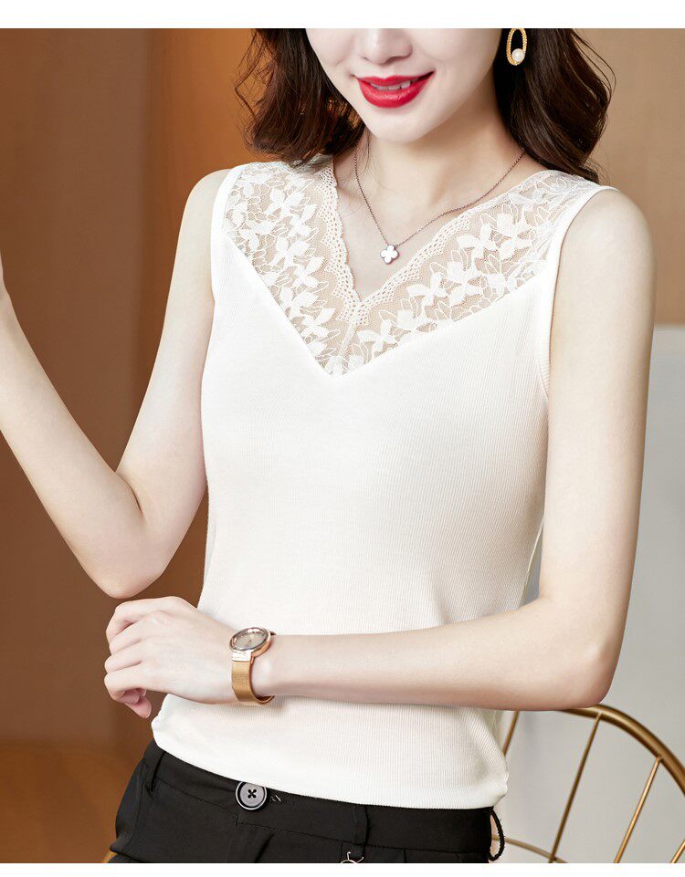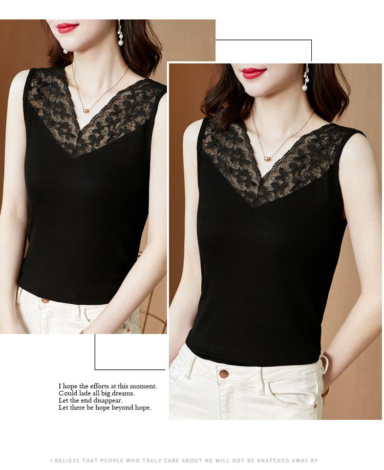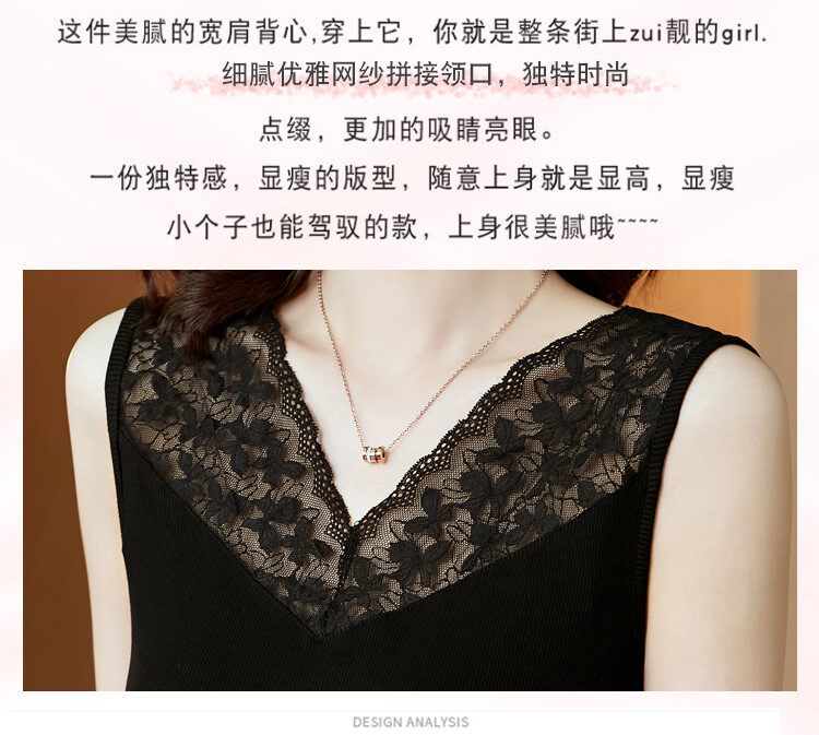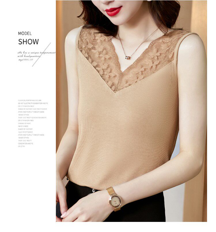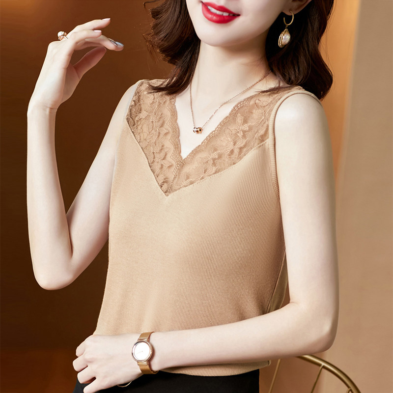 Короткая кружевная шелковая модная базовая приятная телу майка топ без рукавов, французский стиль, V-образный вырез