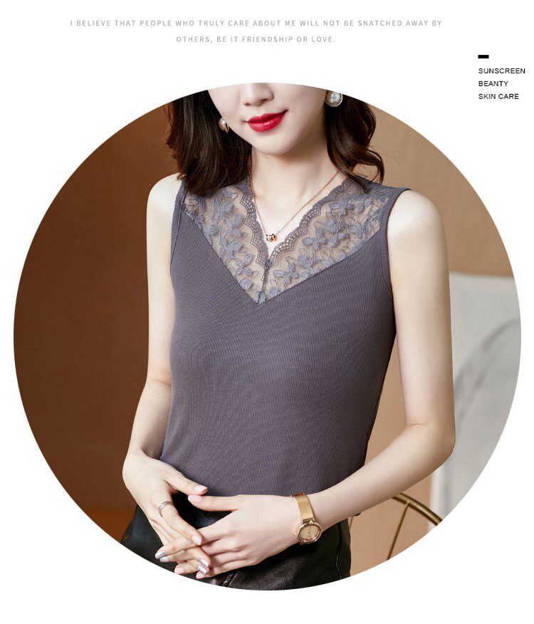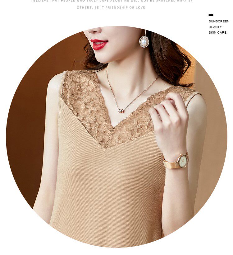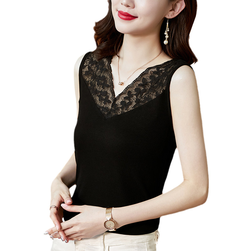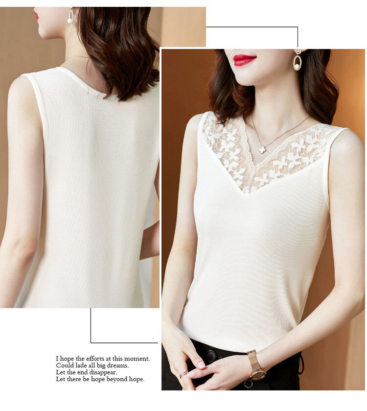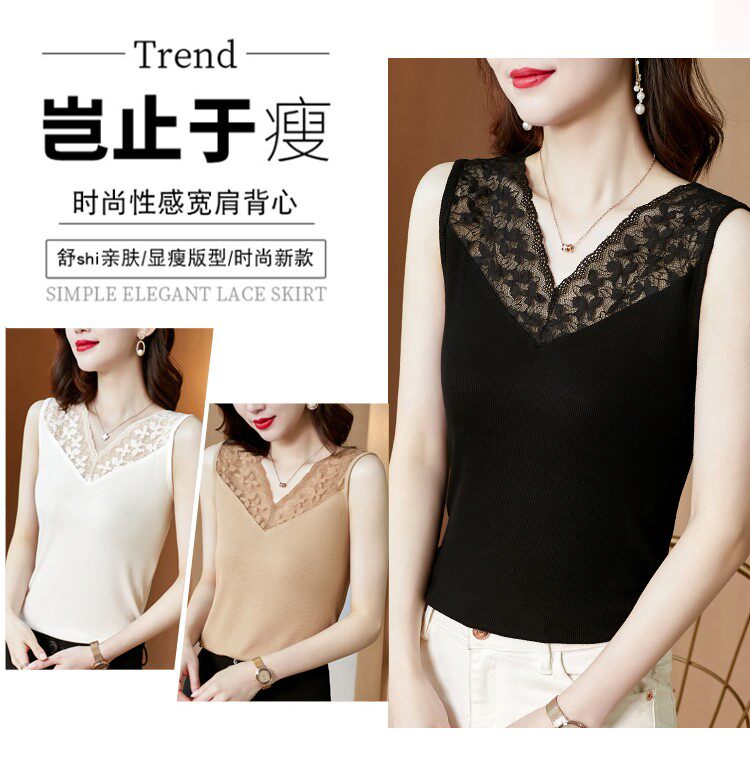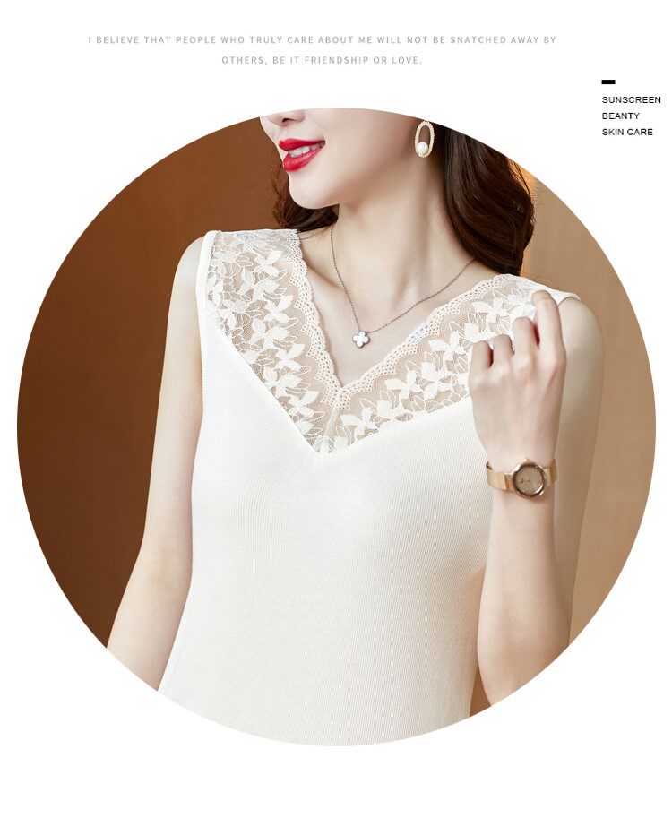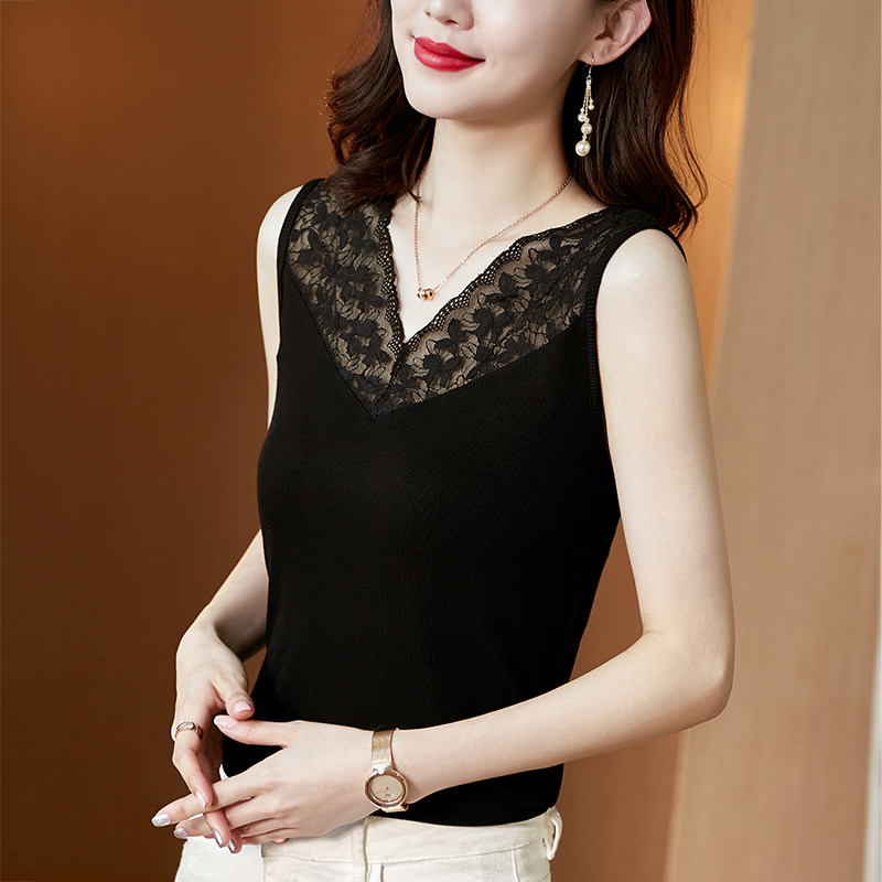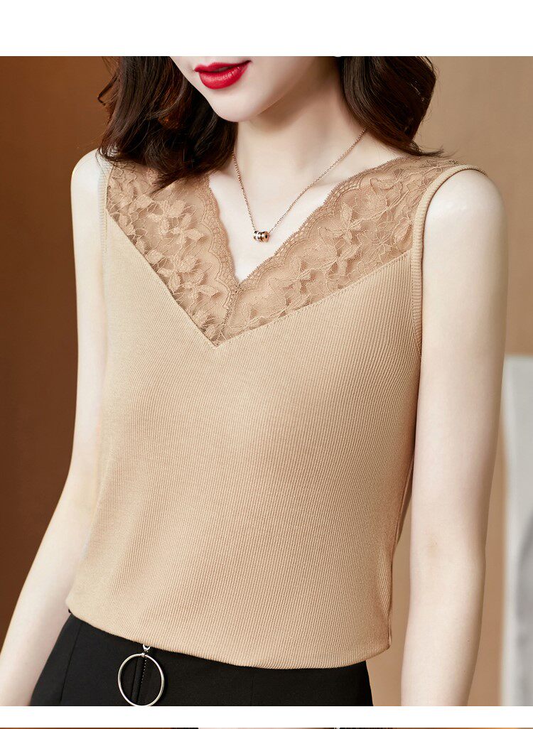 Короткая кружевная шелковая модная базовая приятная телу майка топ без рукавов, французский стиль, V-образный вырез