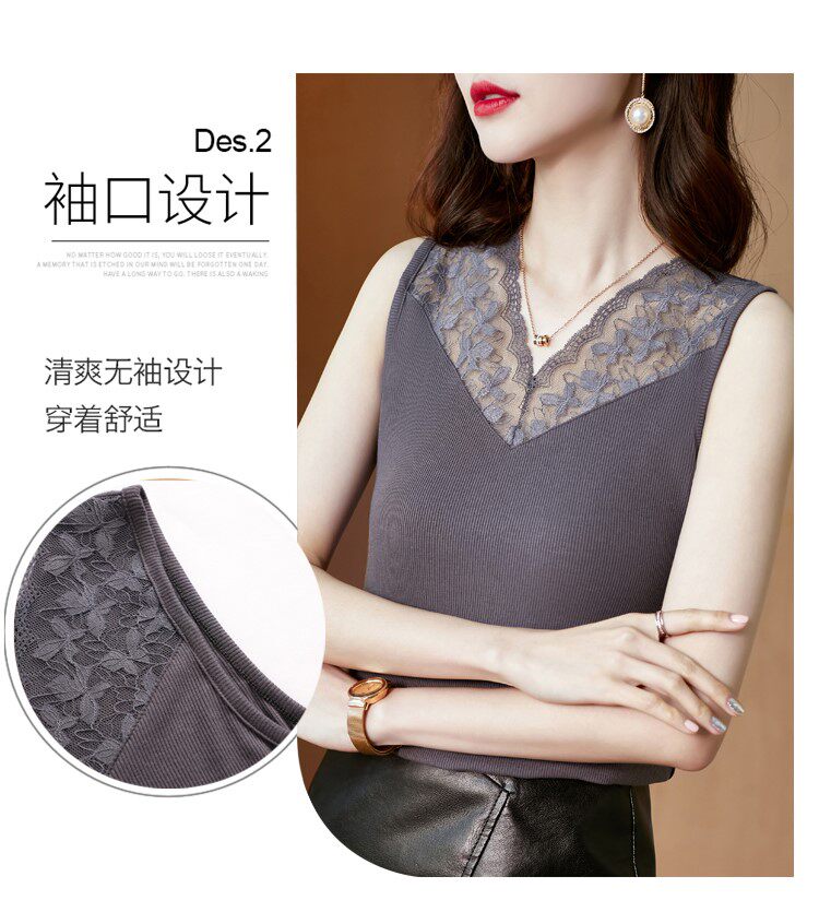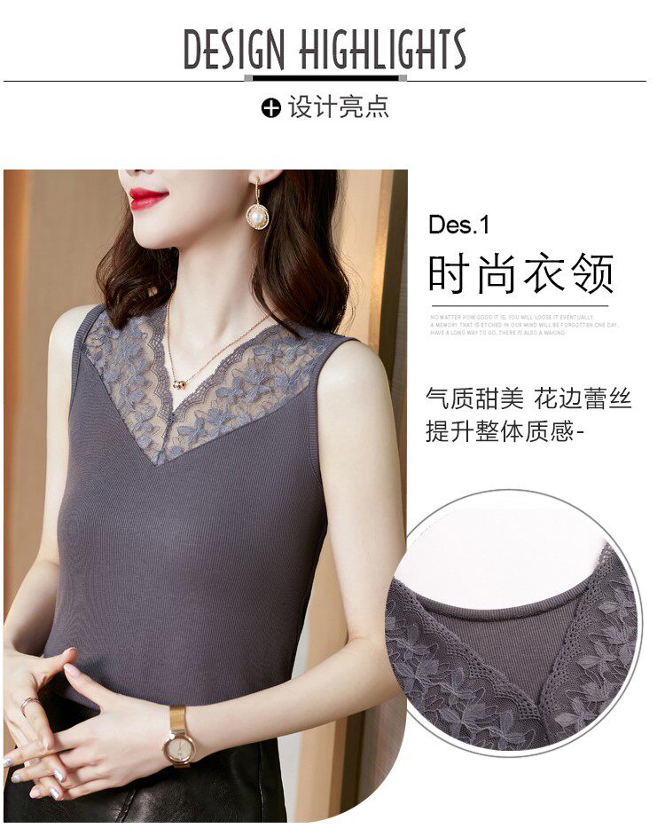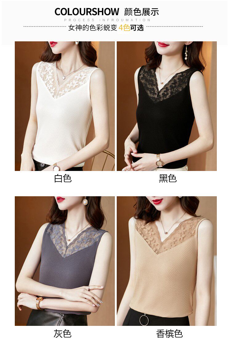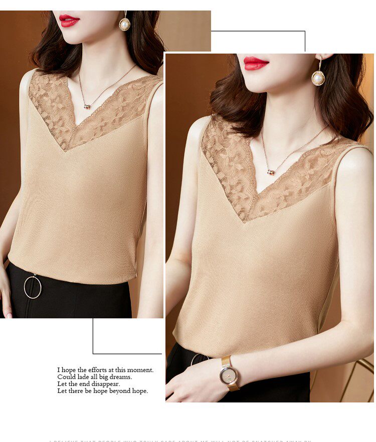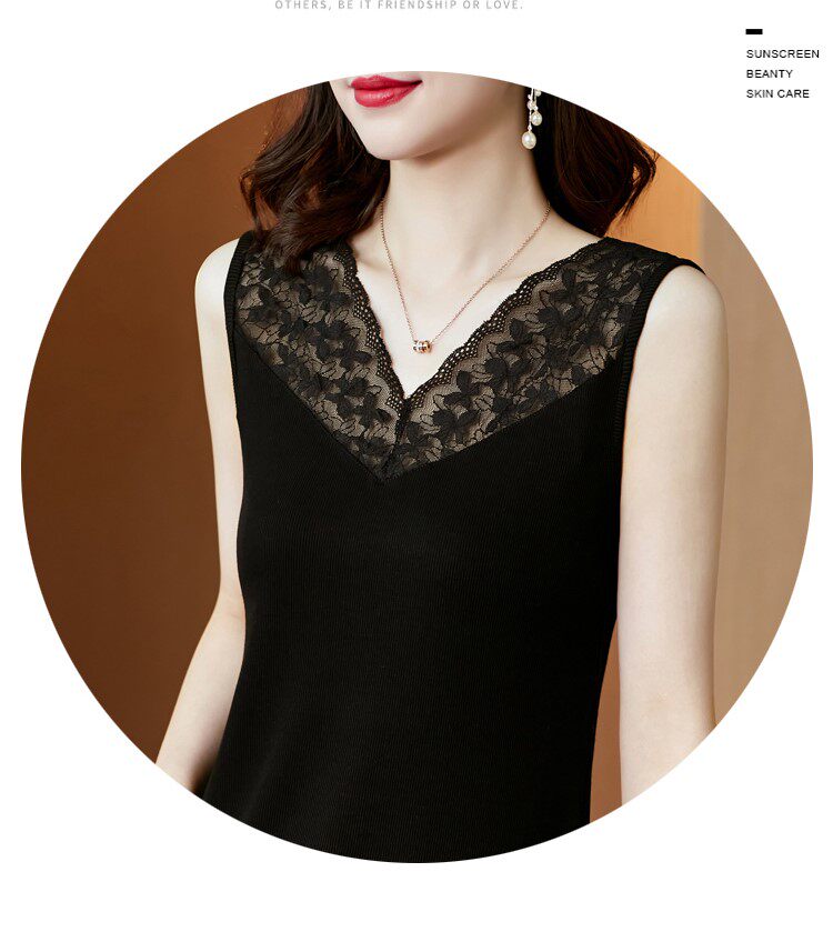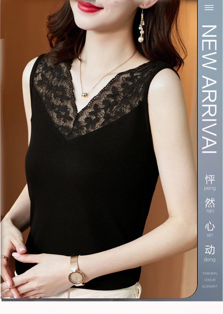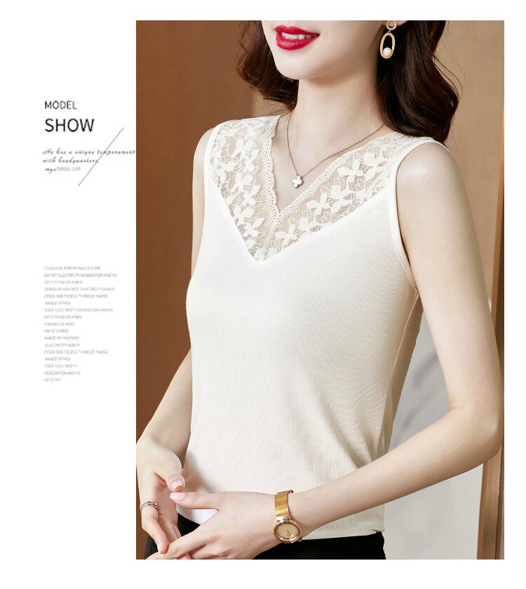 Короткая кружевная шелковая модная базовая приятная телу майка топ без рукавов, французский стиль, V-образный вырез