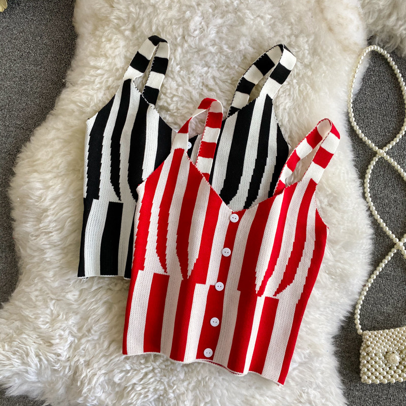 Короткая базовая трикотажная майка топ, в корейском стиле, V-образный вырез