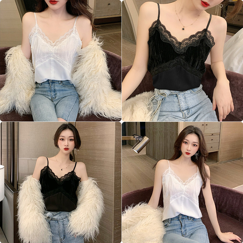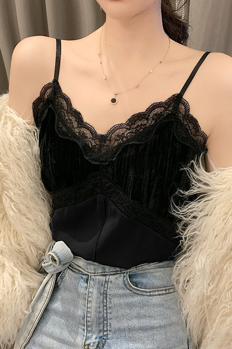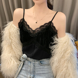 Черная кружевная майка топ, костюм, сексуальное базовое белье для повседневной носки без рукавов, V-образный вырез