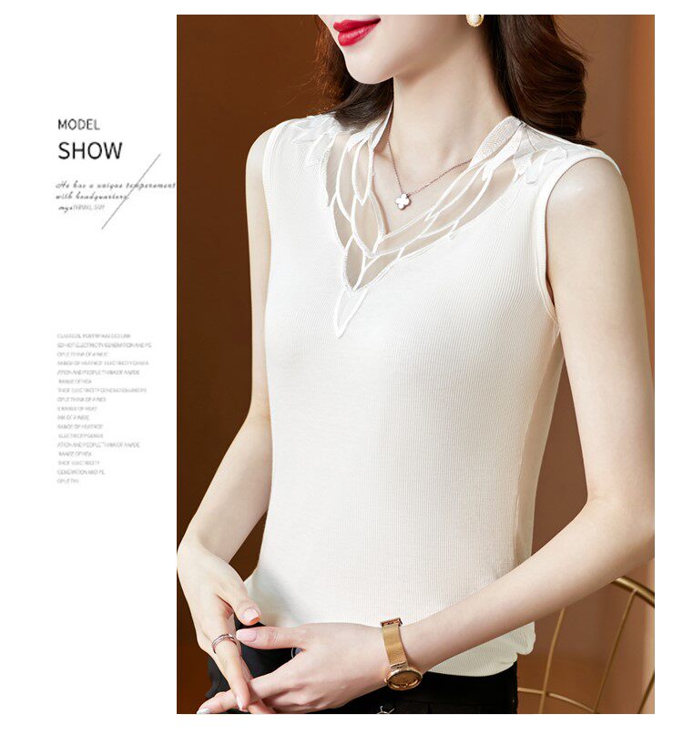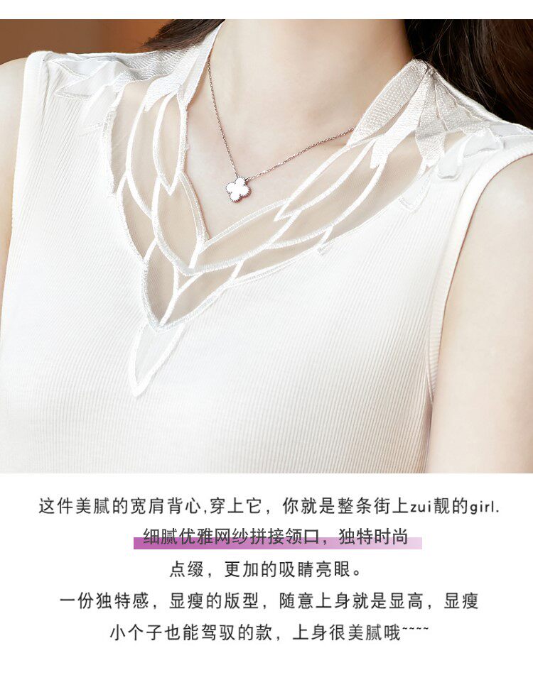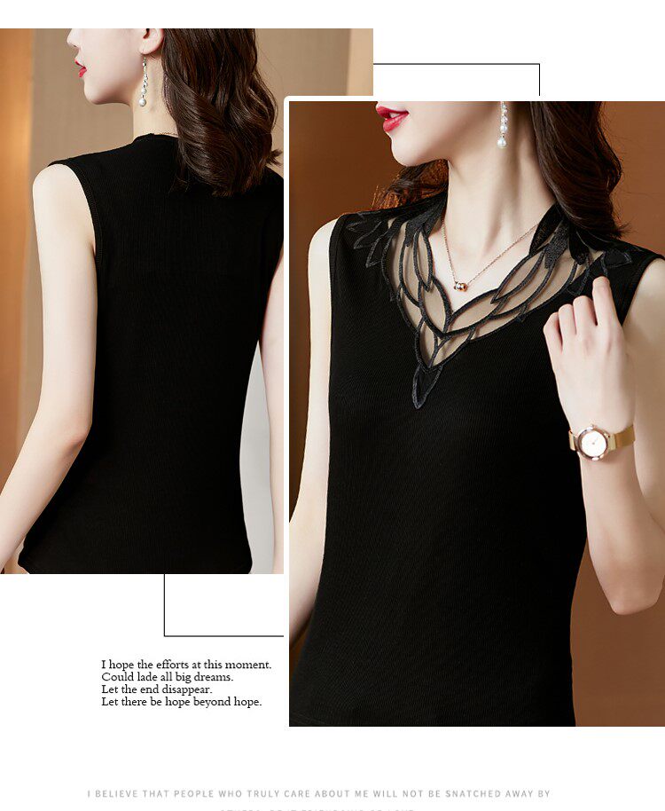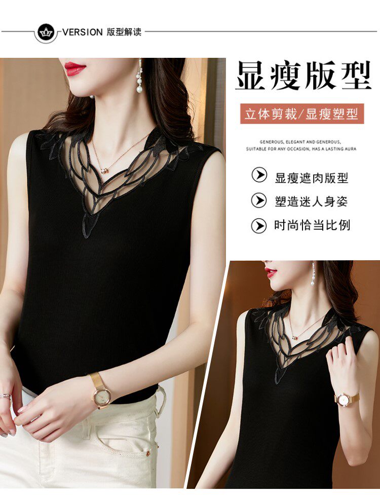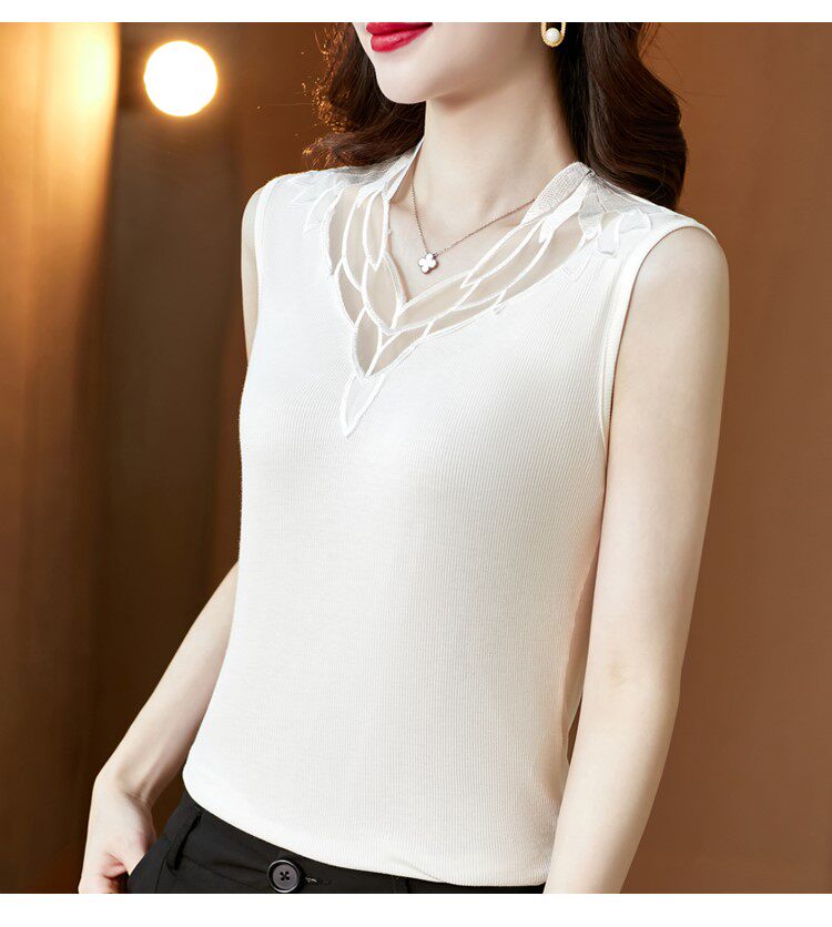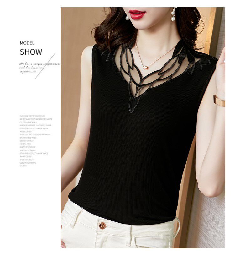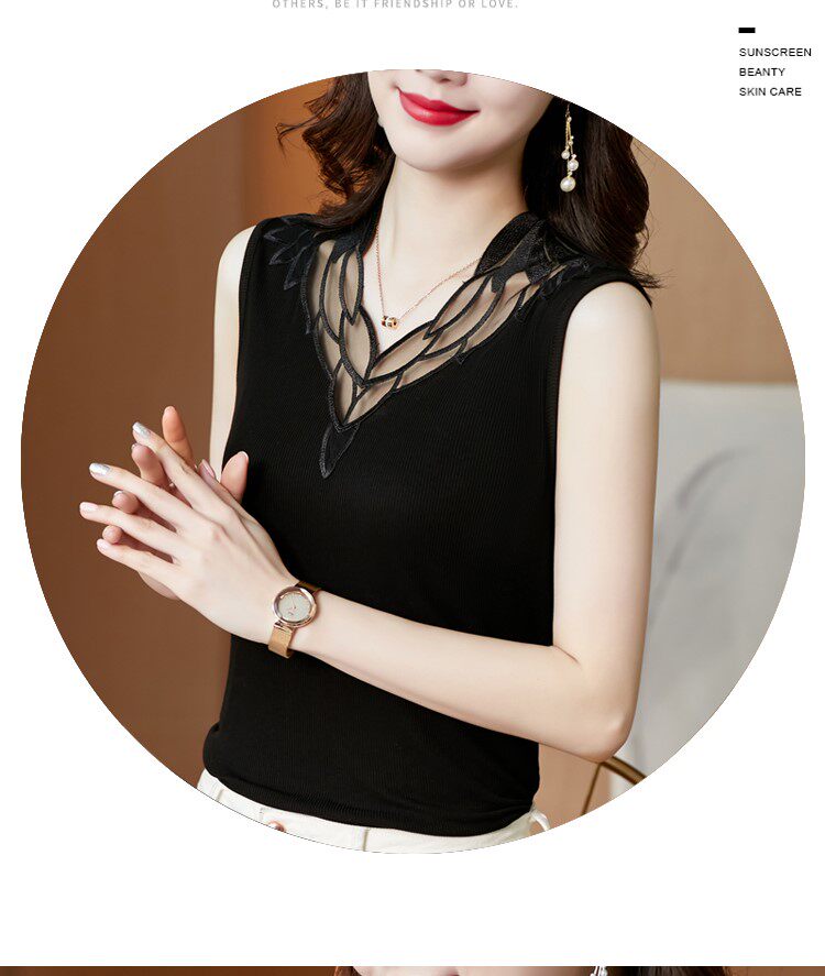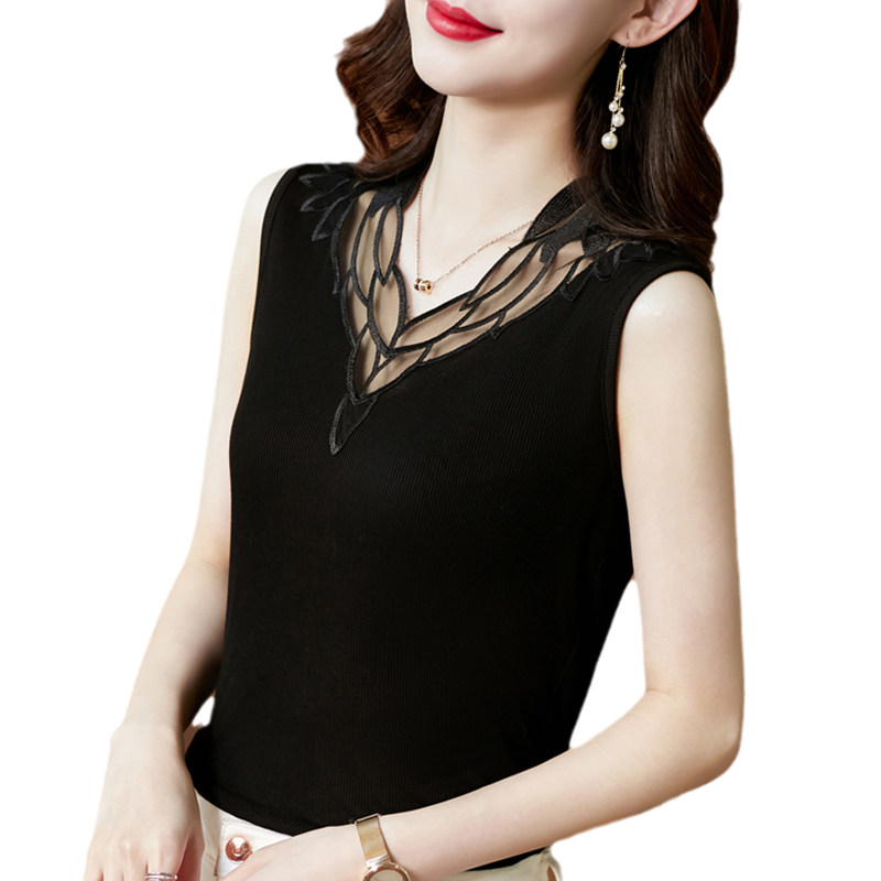Весенний летний короткий кружевной топ с чашечками, базовая футболка без рукавов, V-образный вырез, французский стиль