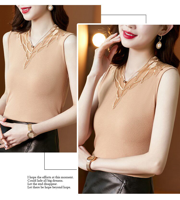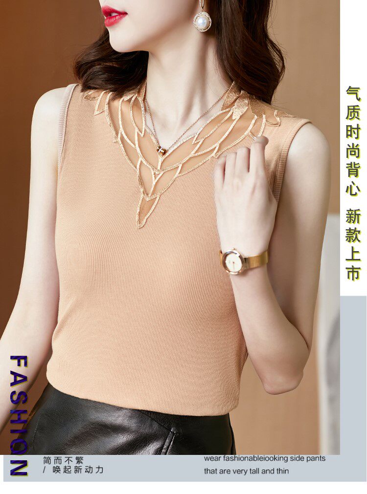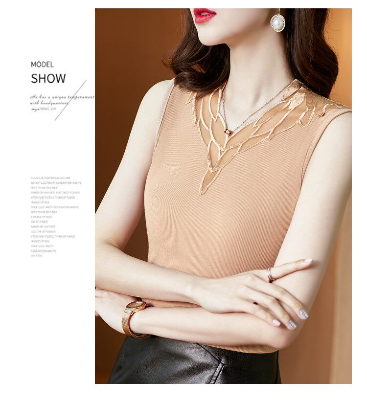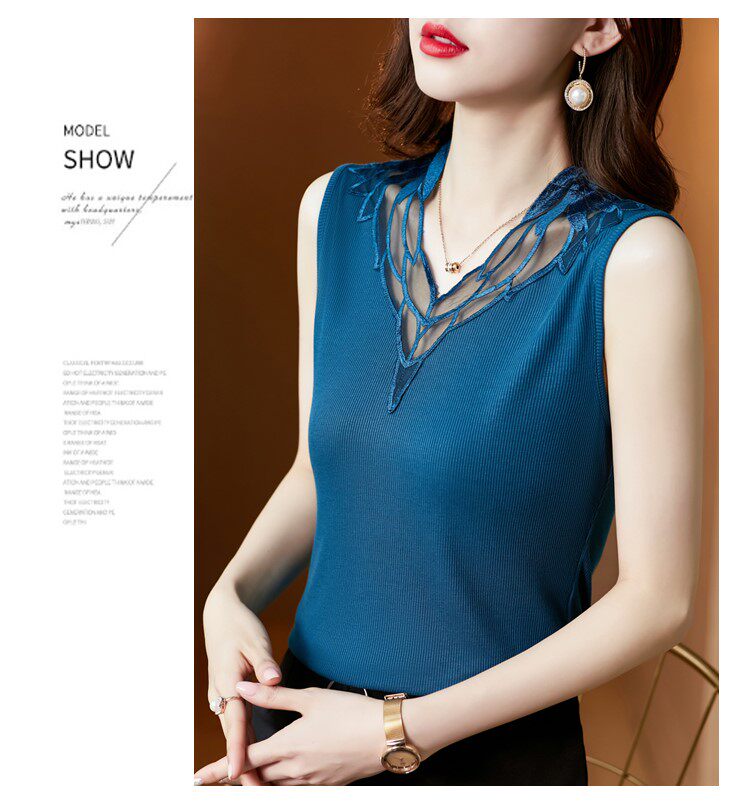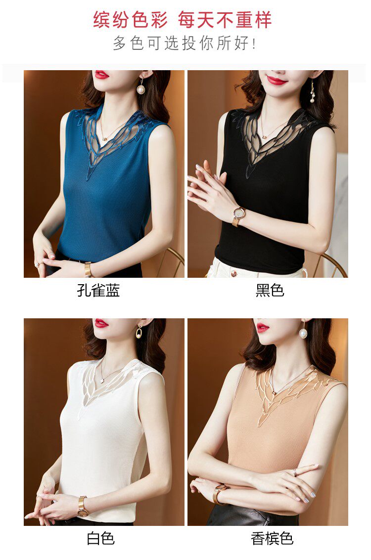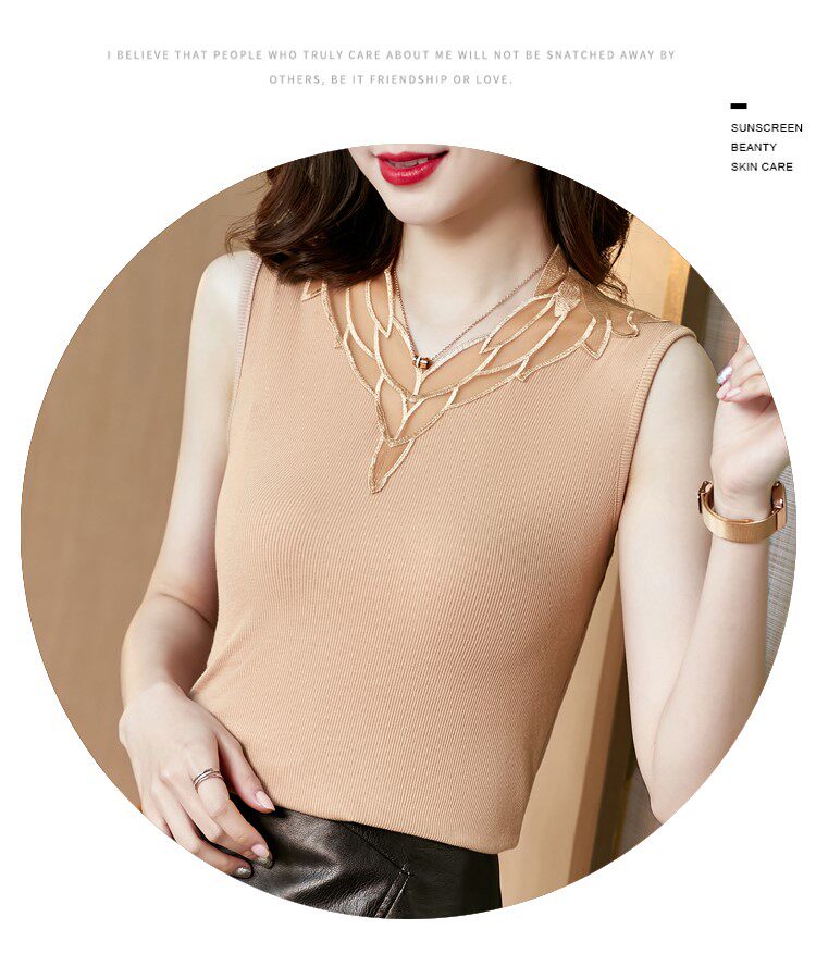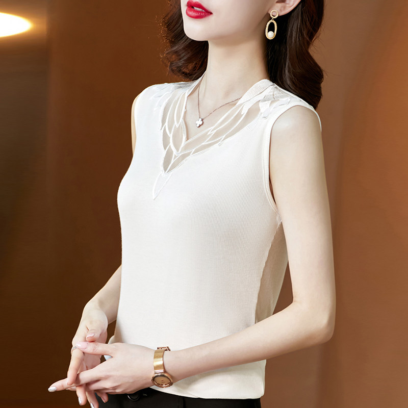 Весенний летний короткий кружевной топ с чашечками, базовая футболка без рукавов, V-образный вырез, французский стиль