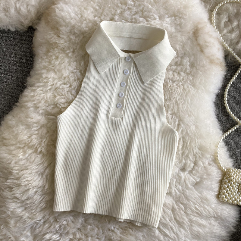 Топ с чашечками, летняя приталенная короткая майка топ, воротник поло, с открытой спиной