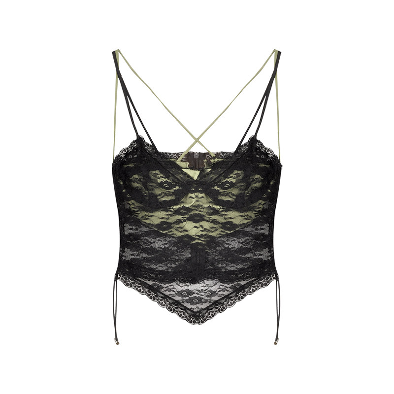 Кружевная сексуальная майка топ, короткое базовое приятное телу белье для повседневной носки, французский стиль