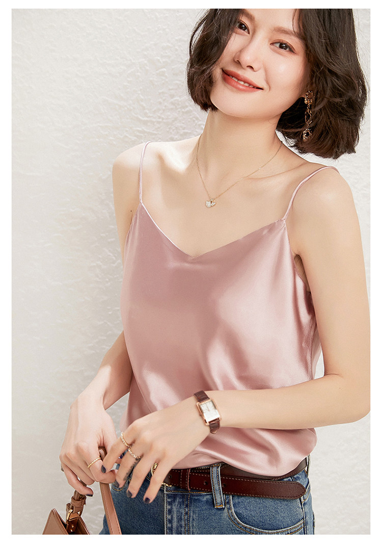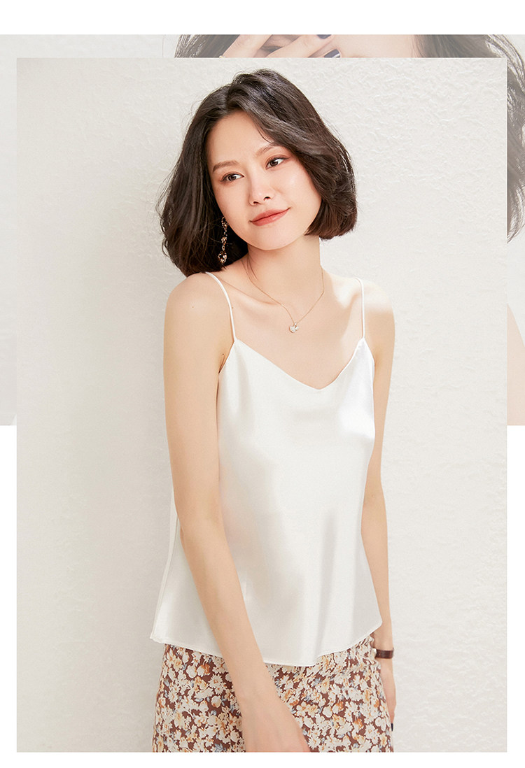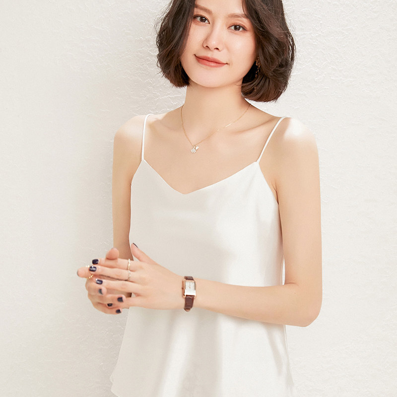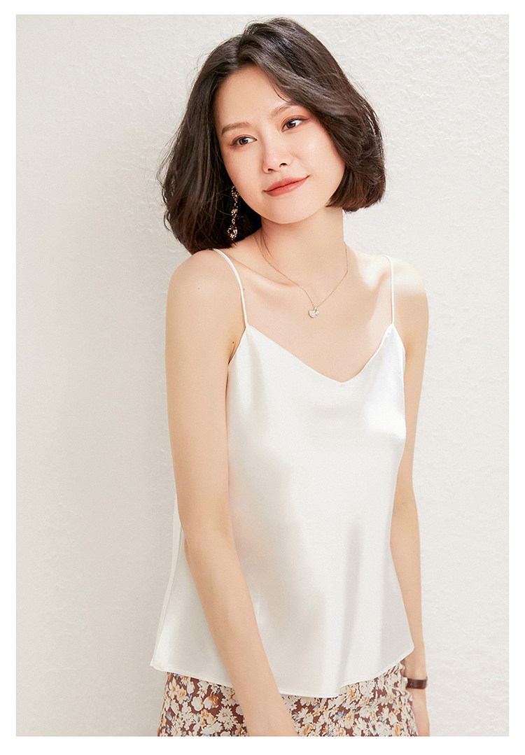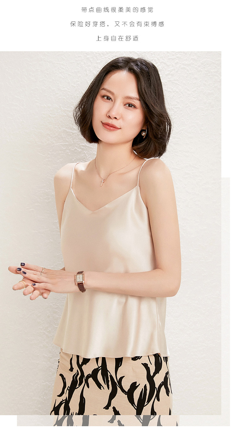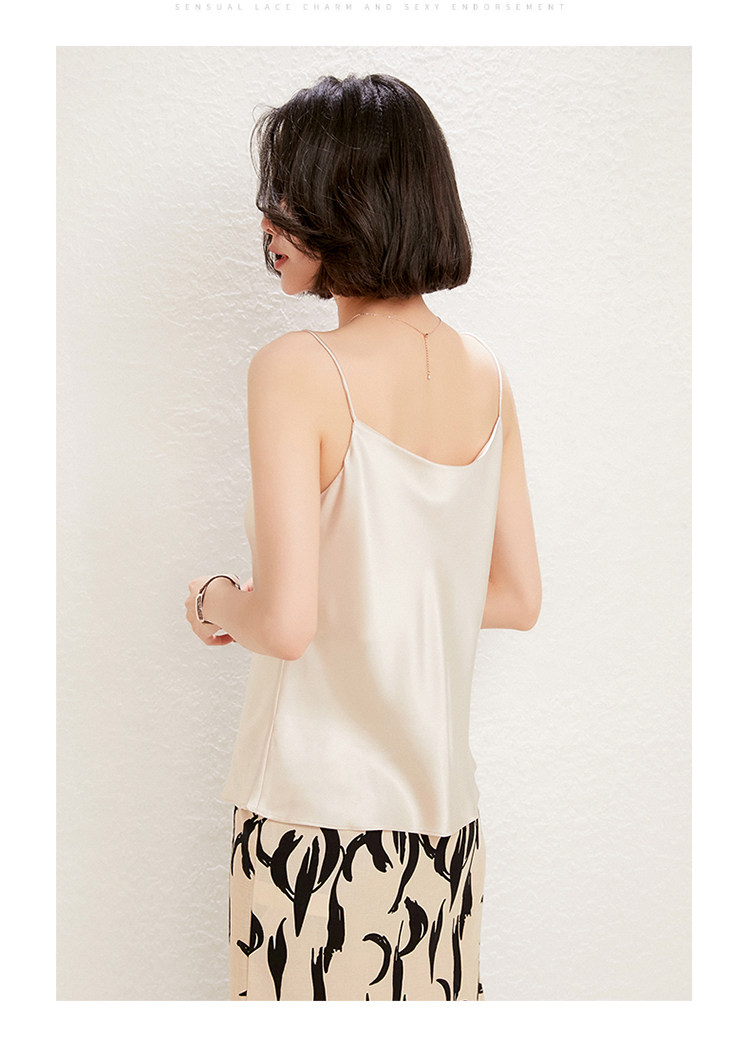Летний шелковый базовый приятный телу топ с чашечками, коллекция 2021, V-образный вырез, красивая спина