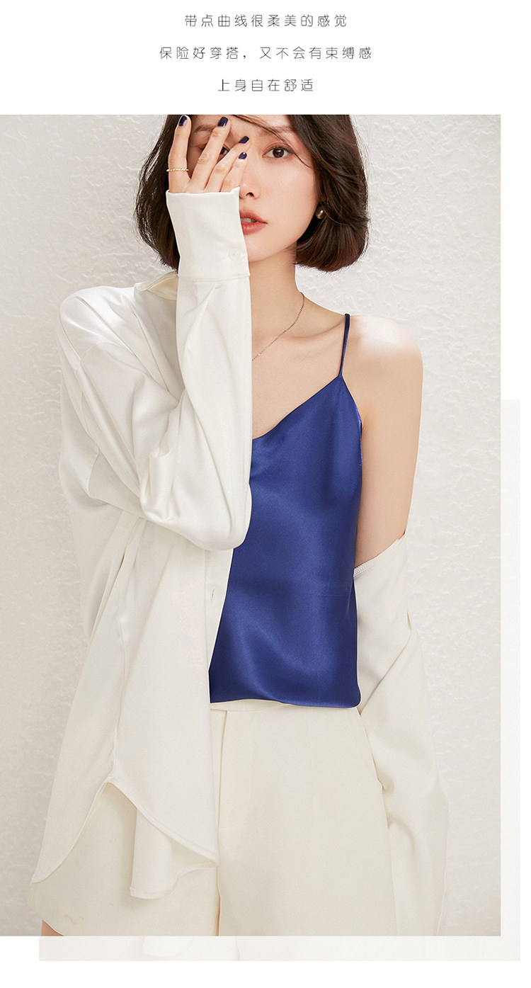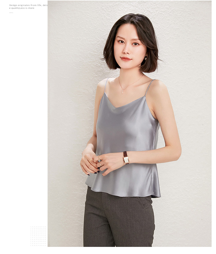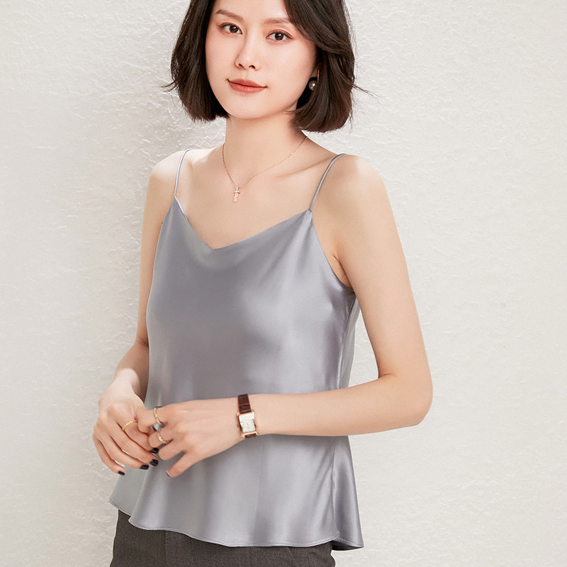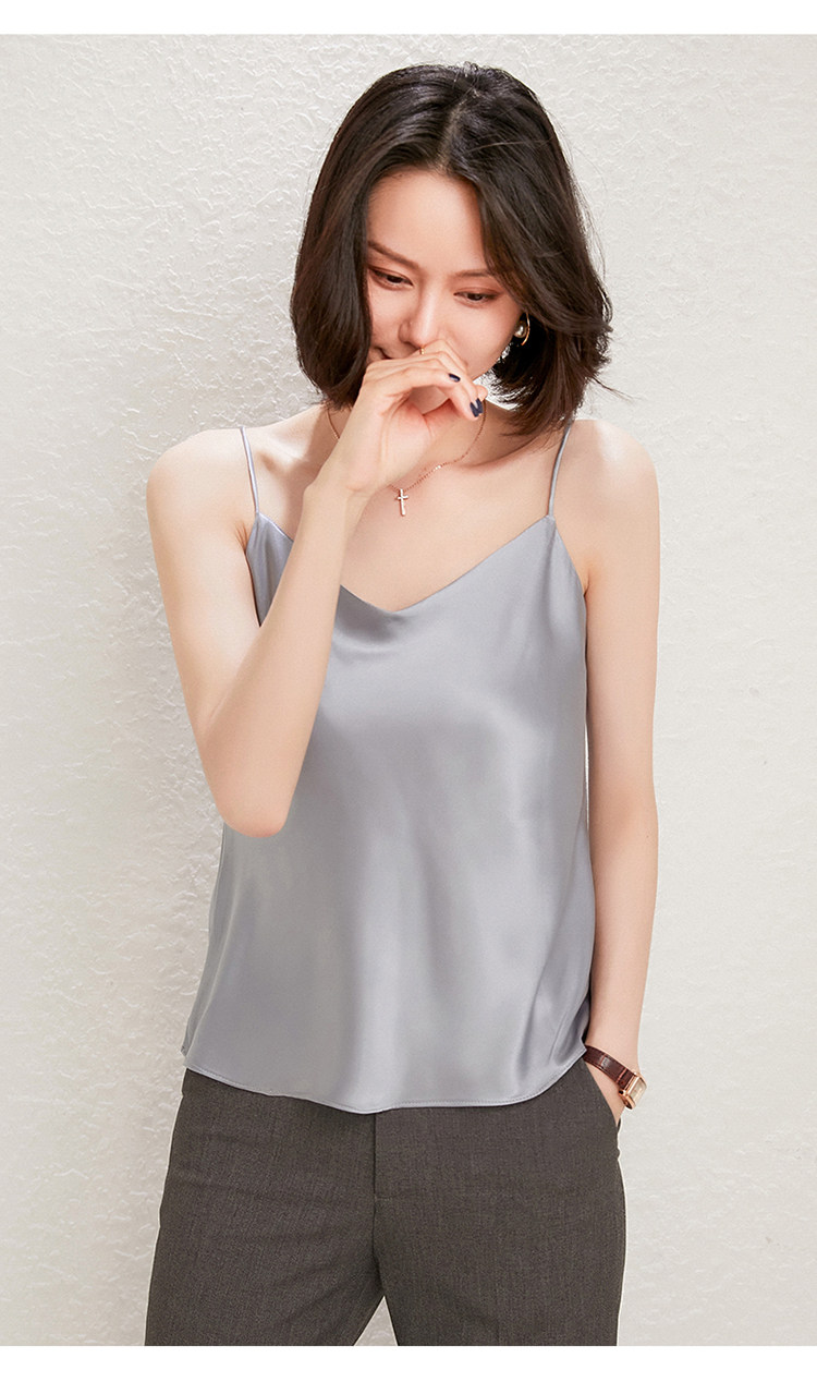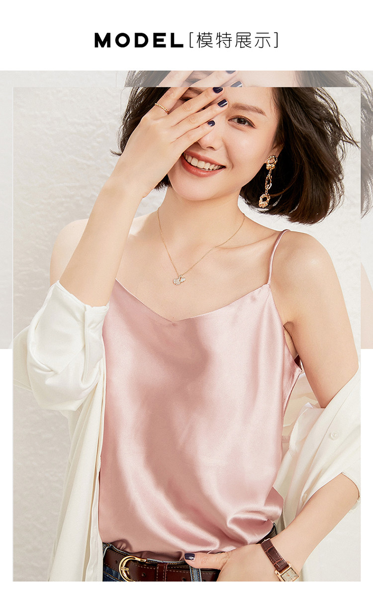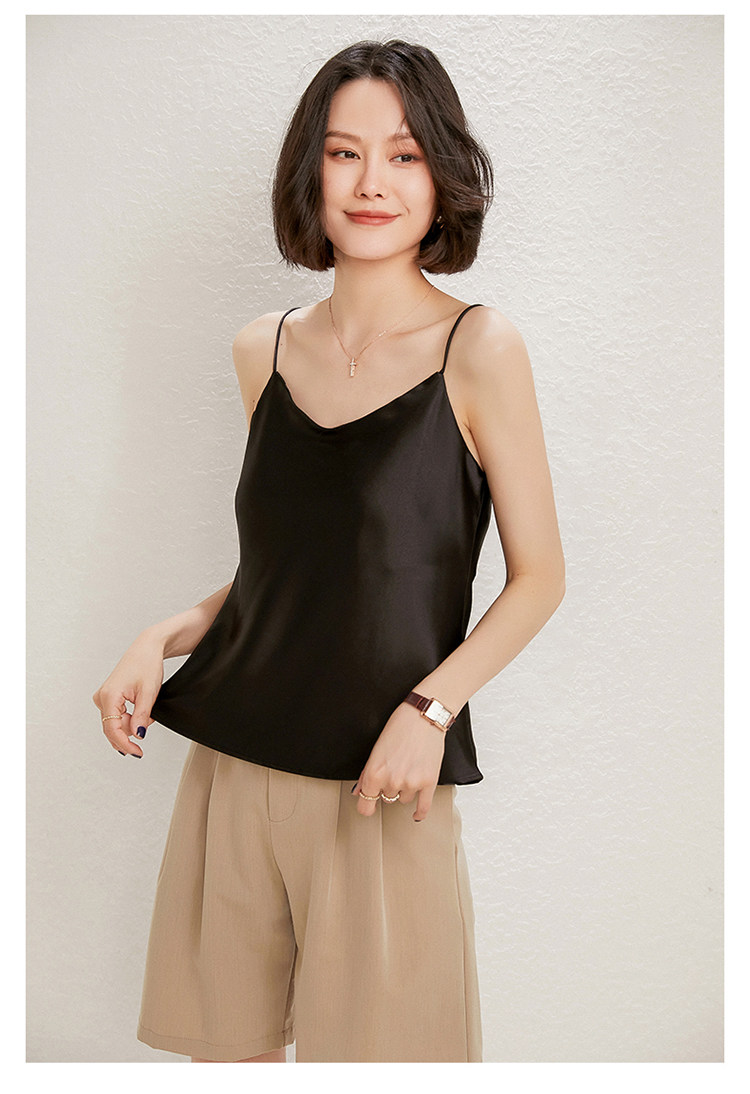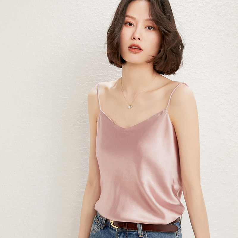 Летний шелковый базовый приятный телу топ с чашечками, коллекция 2021, V-образный вырез, красивая спина