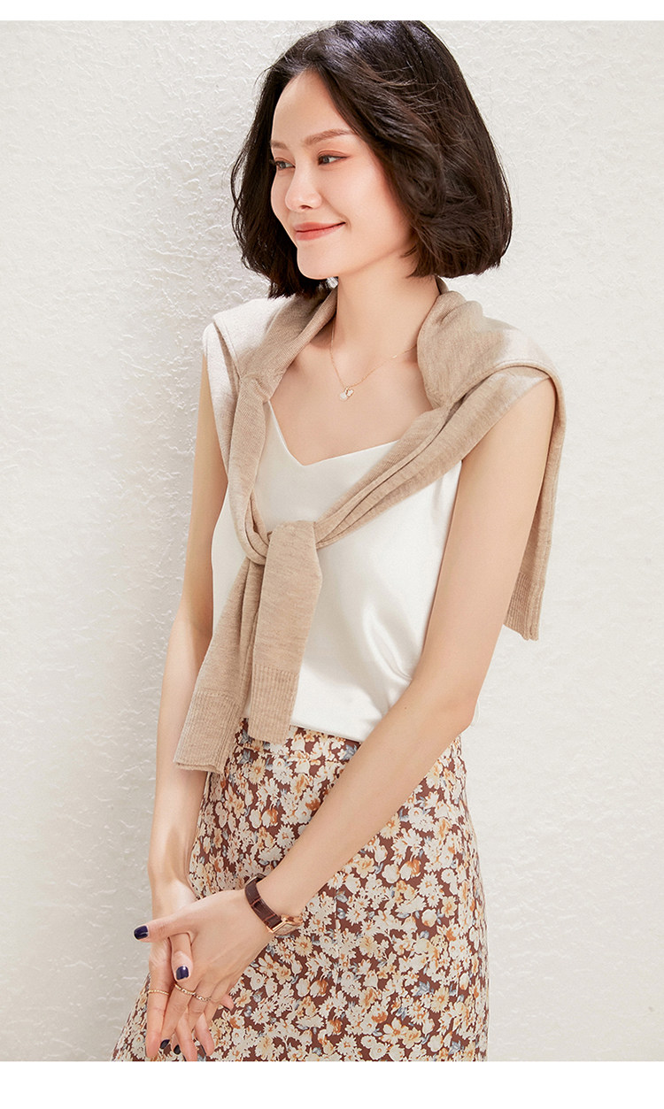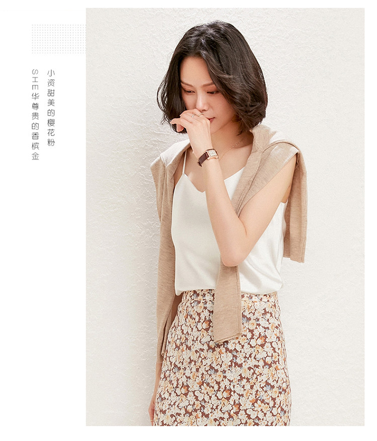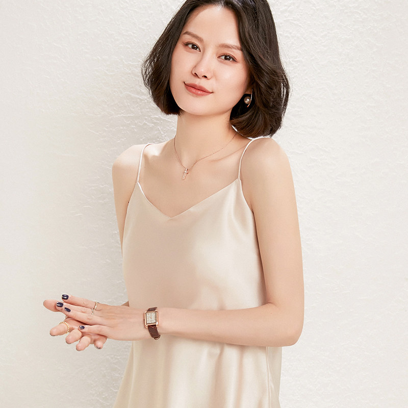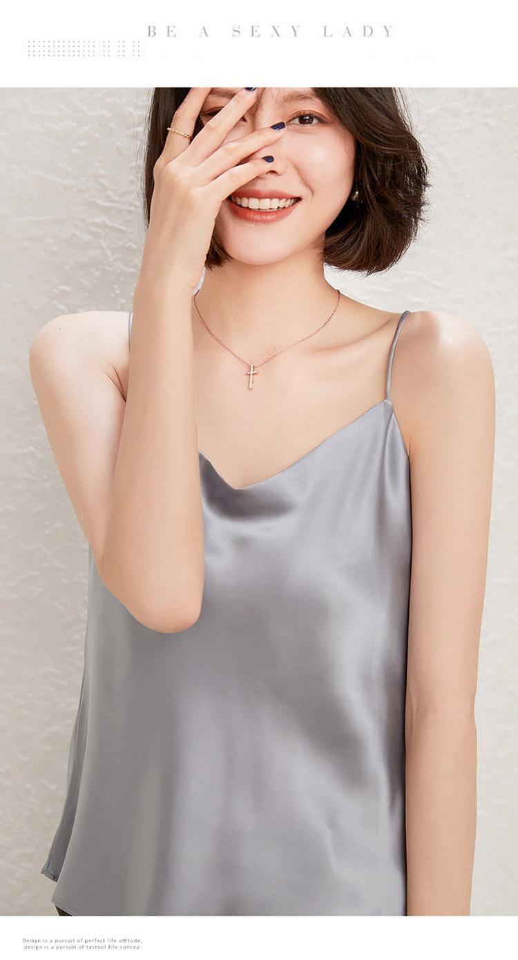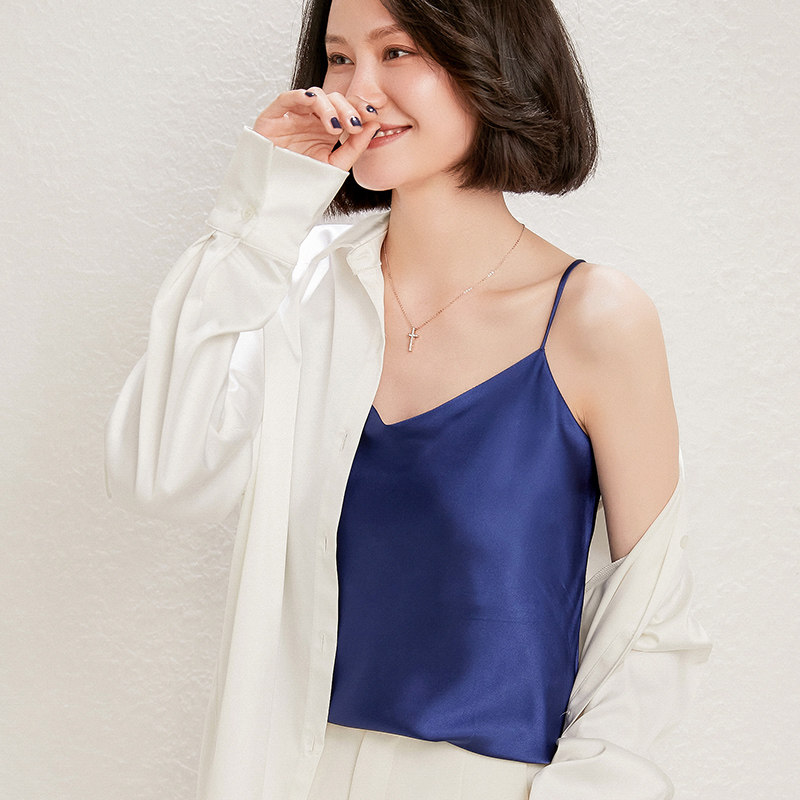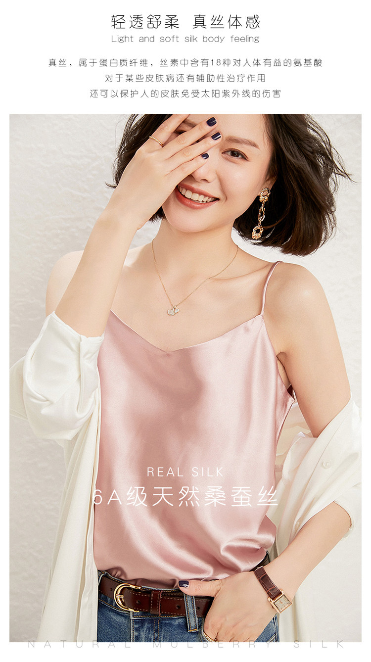 Летний шелковый базовый приятный телу топ с чашечками, коллекция 2021, V-образный вырез, красивая спина