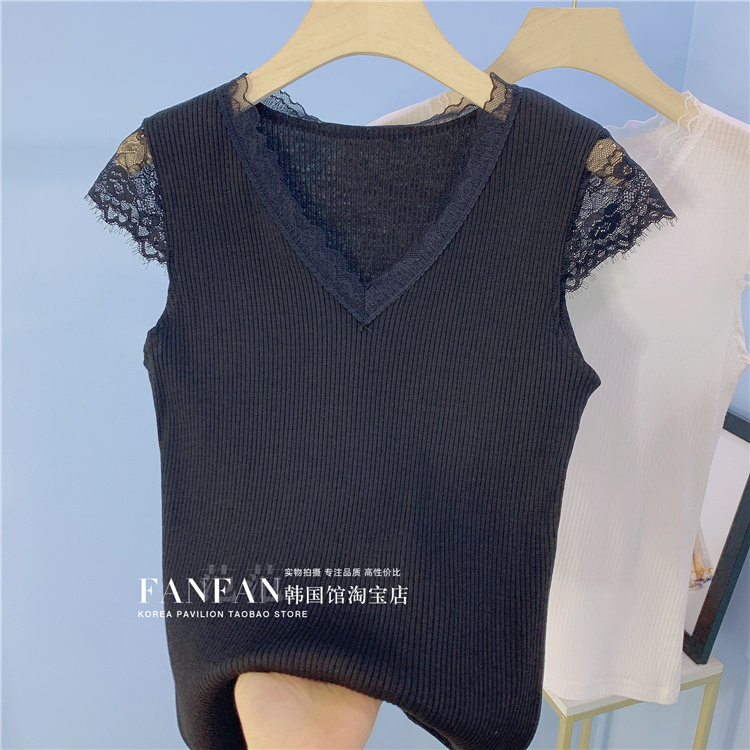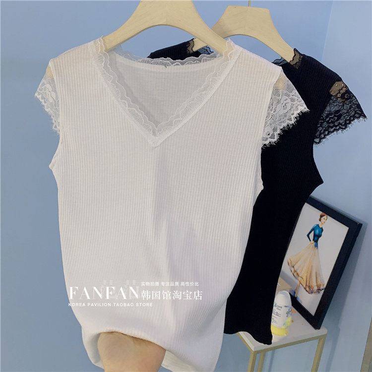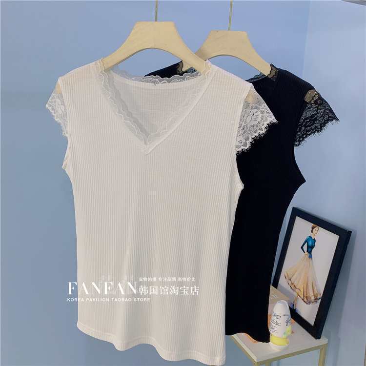 Кружевная весенняя летняя майка топ без рукавов, приятная телу футболка, по фигуре