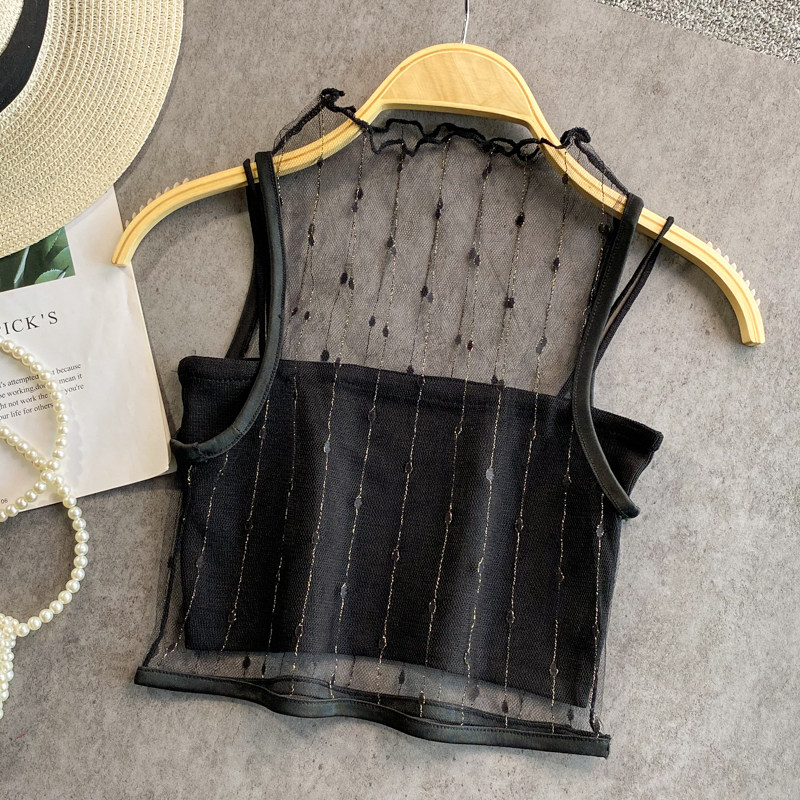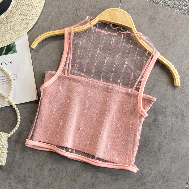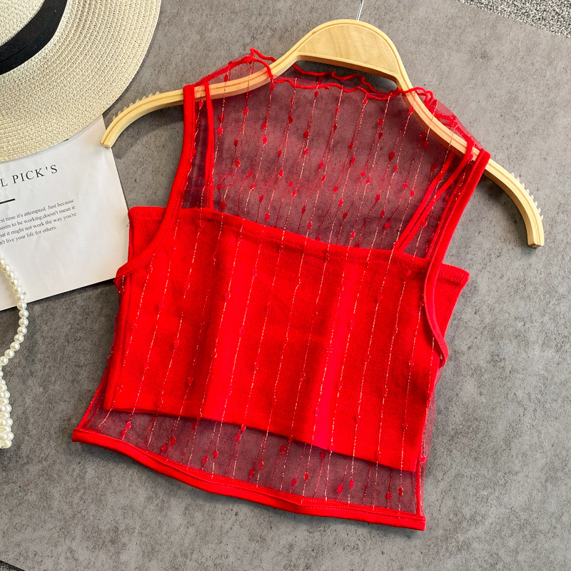 Летний милый приталенный трикотажный жилет, комплект, в западном стиле, высокий воротник, эффект подтяжки