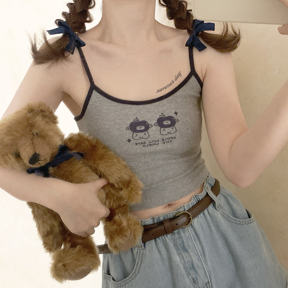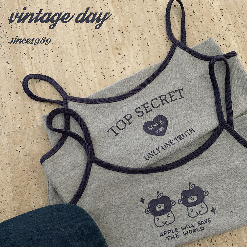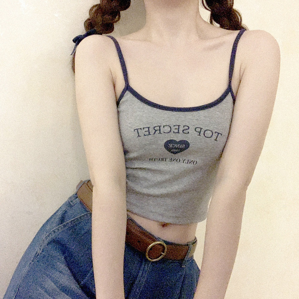 Оригинальные раскрытые груди подходят для маленьких грудных девочек Американские буквы ретро -ретро -серая маленькая камизол h