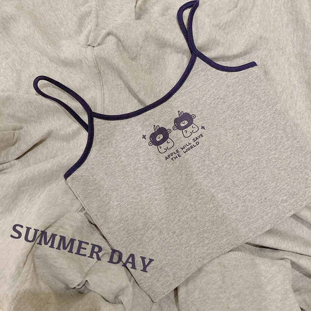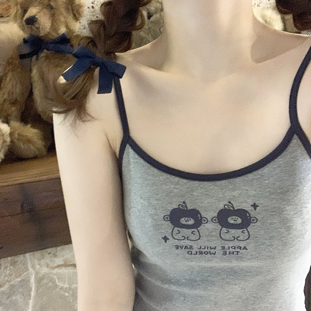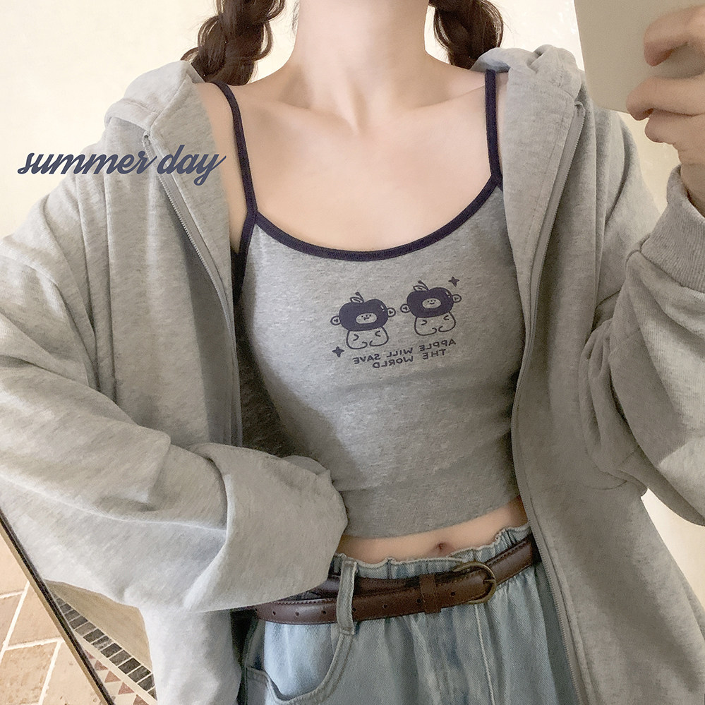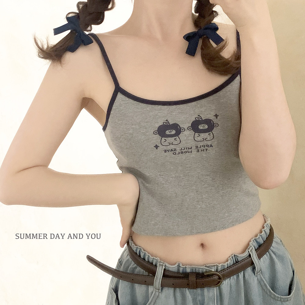 Оригинальные раскрытые груди подходят для маленьких грудных девочек Американские буквы ретро -ретро -серая маленькая камизол h