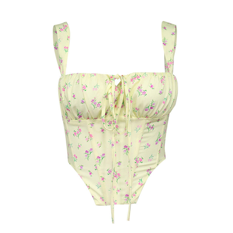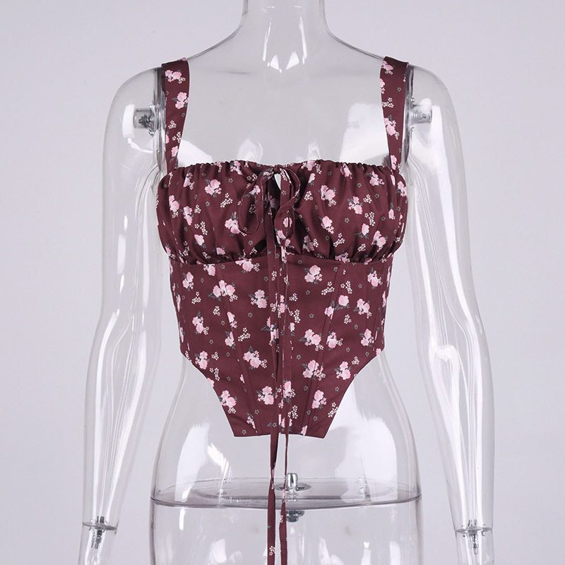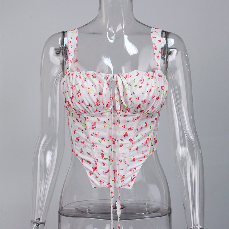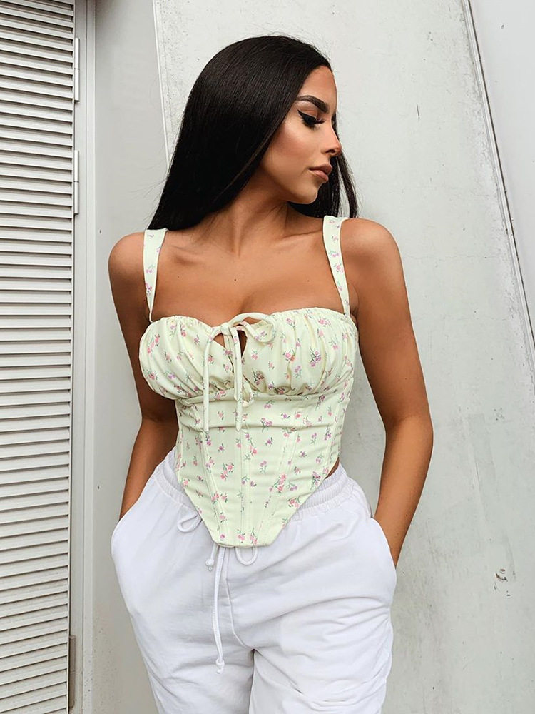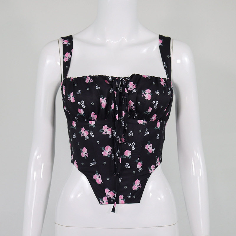 Свежий ретро корсет, брендовая майка, 2022, цветочный принт, европейский стиль, популярно в интернете, эффект подтяжки