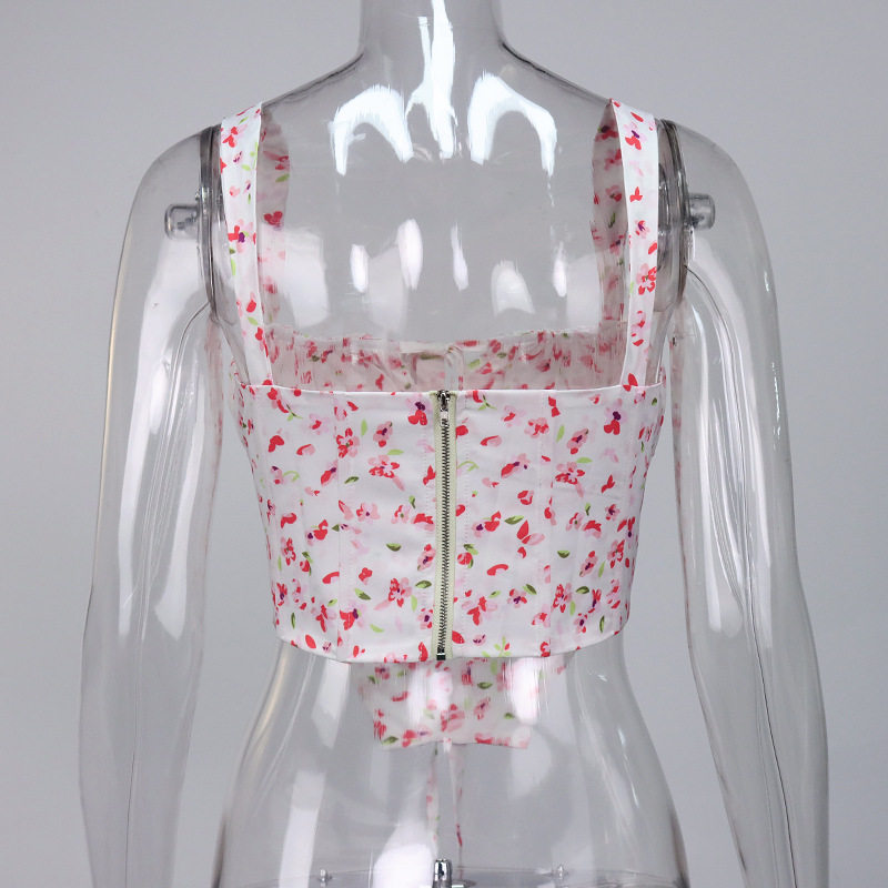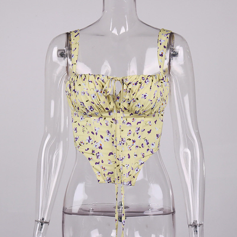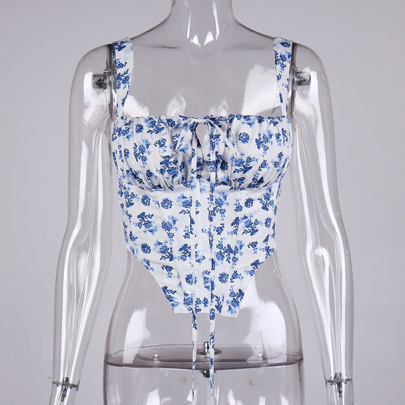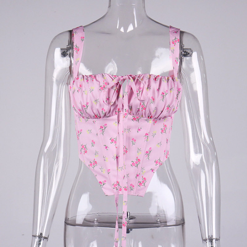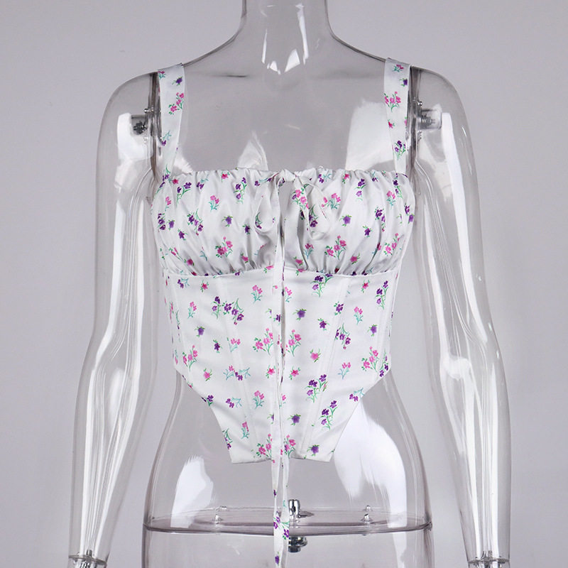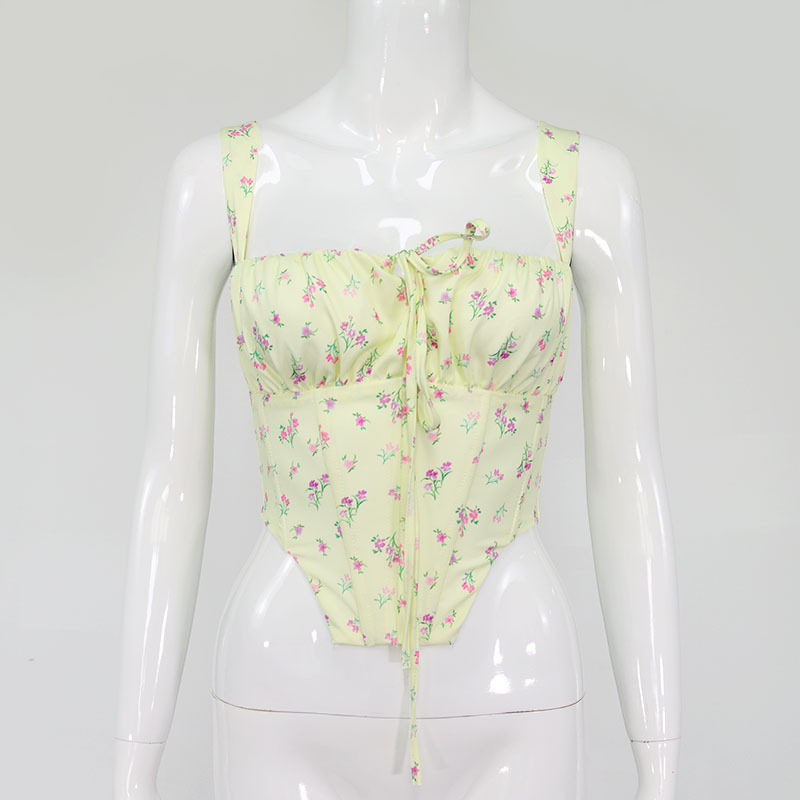Свежий ретро корсет, брендовая майка, 2022, цветочный принт, европейский стиль, популярно в интернете, эффект подтяжки