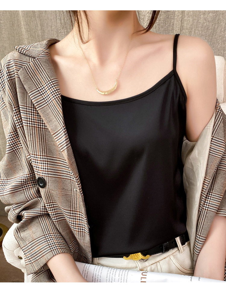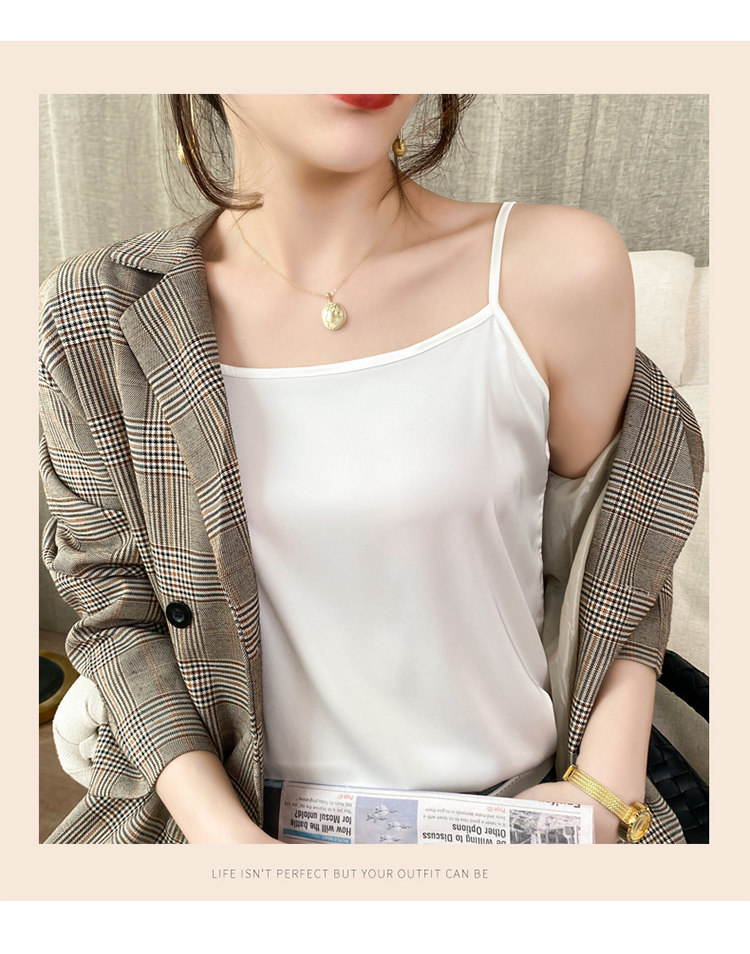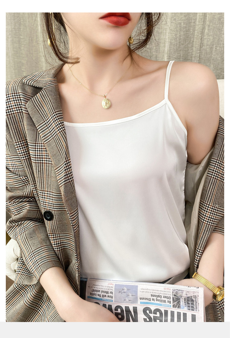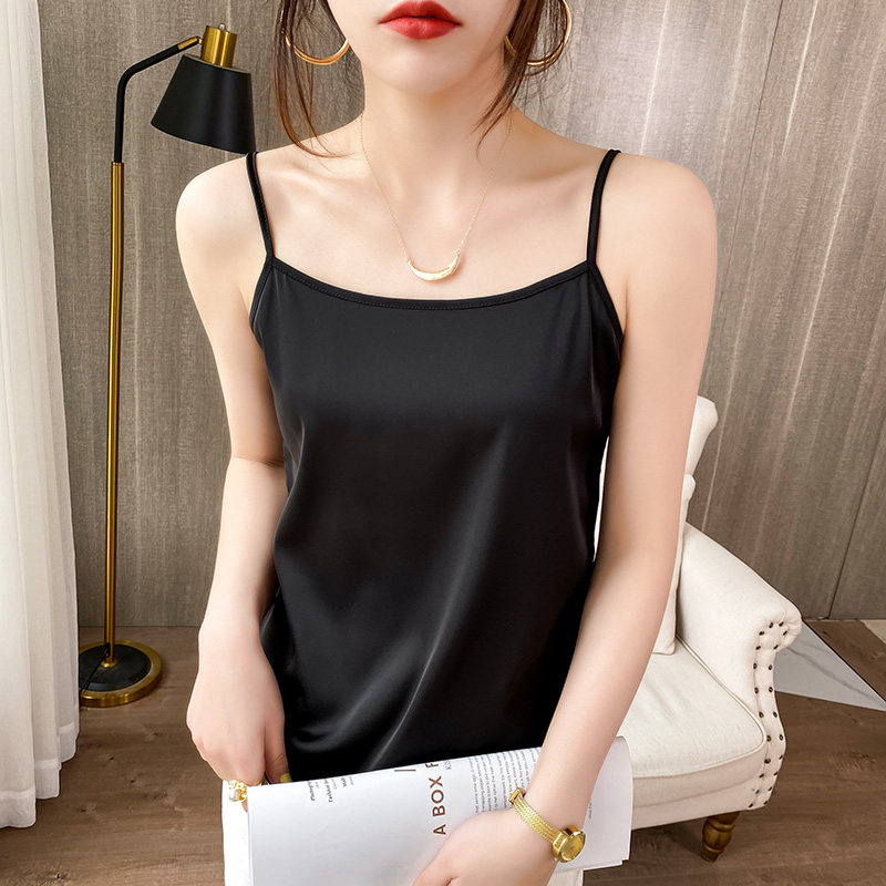 Шелковая базовая майка топ, белый черный шелковый костюм, для маленькой груди