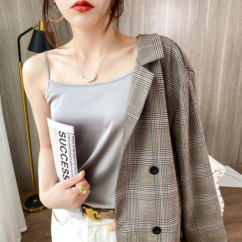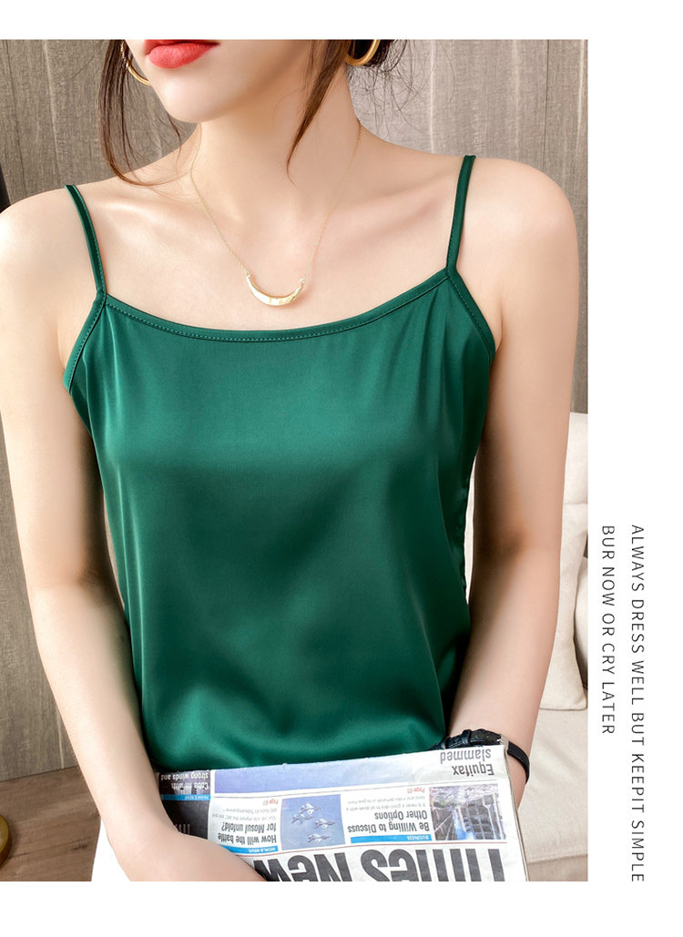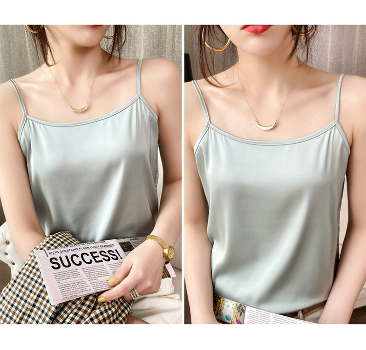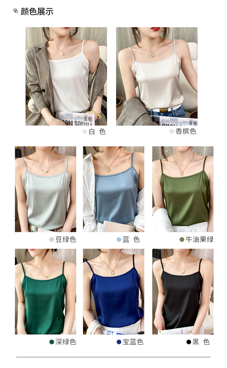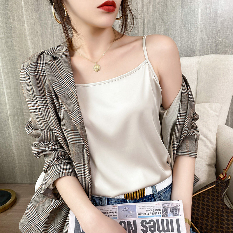 Шелковая базовая майка топ, белый черный шелковый костюм, для маленькой груди