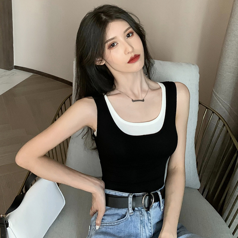 Топ с чашечками, майка топ, приталенный базовый приятный телу комплект без рукавов, большой размер