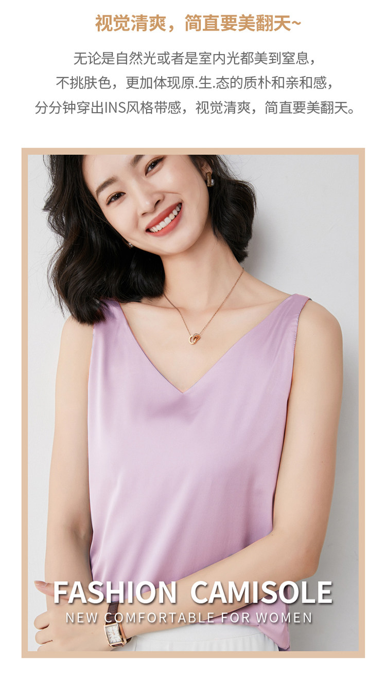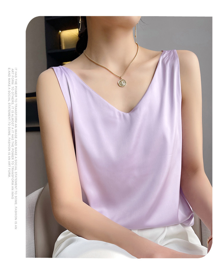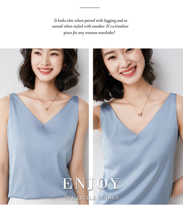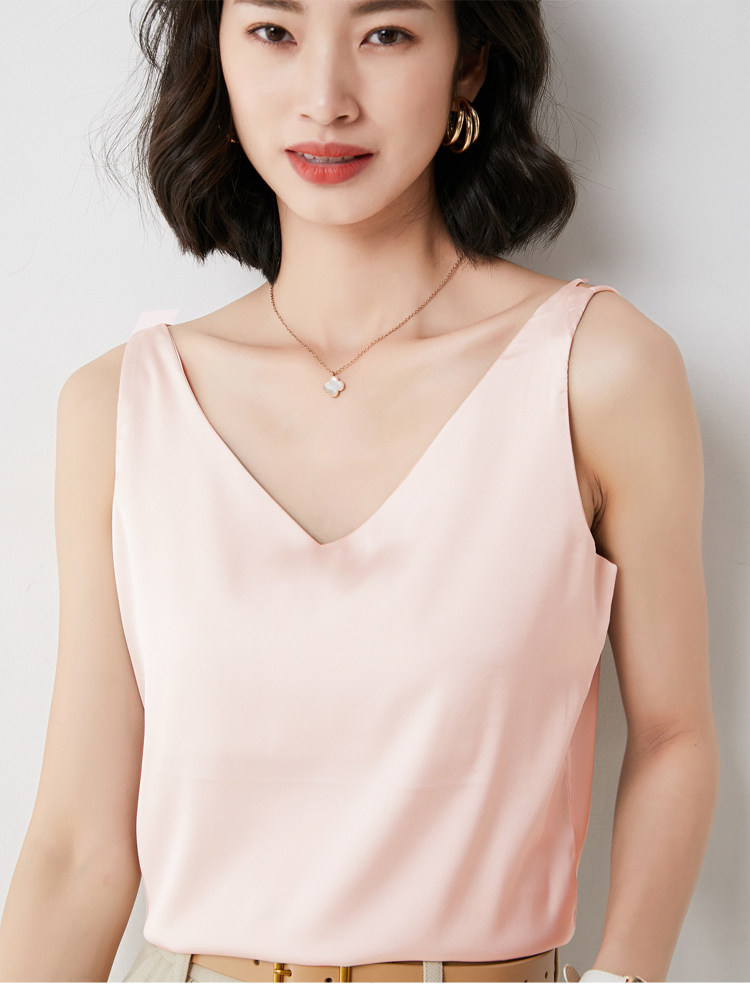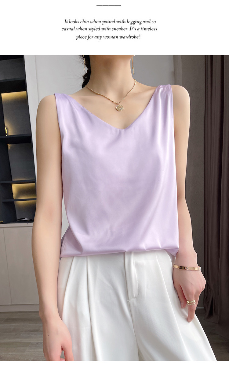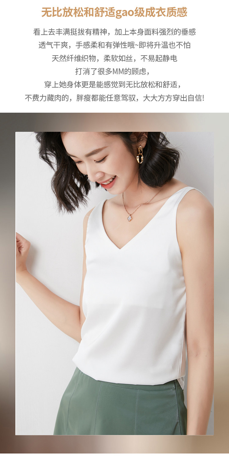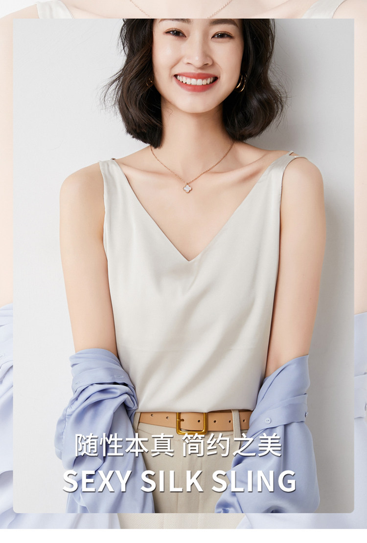 Шелковая майка топ, белый черный базовый шелковый летний костюм, V-образный вырез