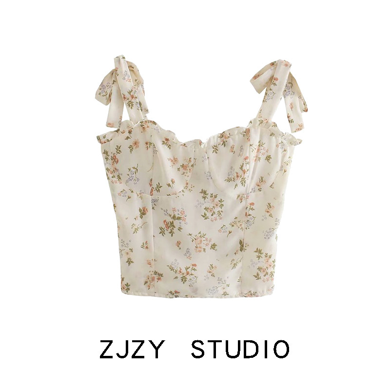 Приталенный корсет, короткая майка топ, европейский стиль, французский стиль, в цветочек