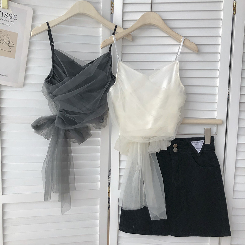 Ремень без рукавов, летняя цветная летняя одежда, эффект подтяжки, в корейском стиле, V-образный вырез, по фигуре