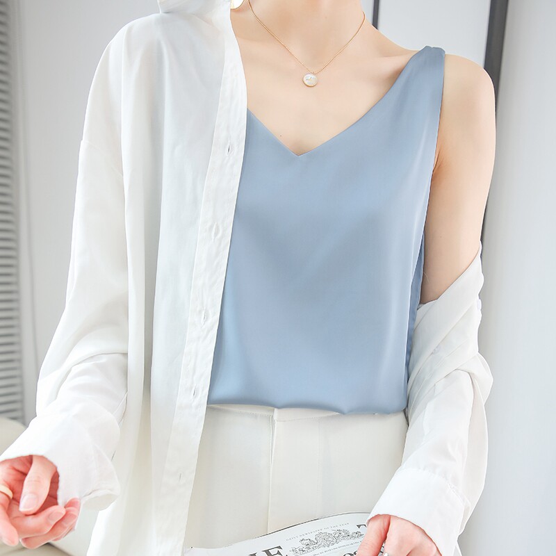Летний модный шелковый сексуальный жилет без рукавов, городской стиль, надевается на плечо, V-образный вырез, большой размер