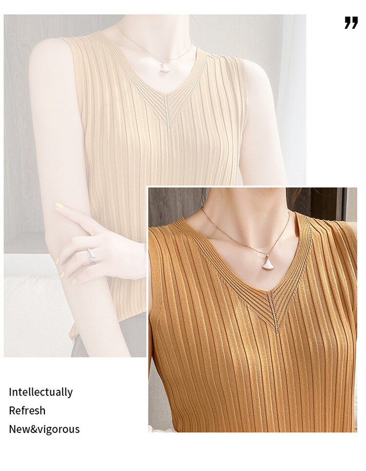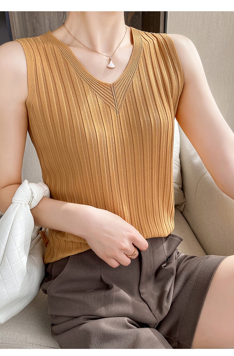 Шелковый трикотажный жилет без рукавов, майка топ, короткая базовая футболка, белье для повседневной носки, V-образный вырез, облегающий крой, эффект подтяжки