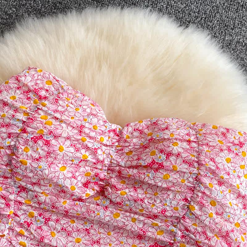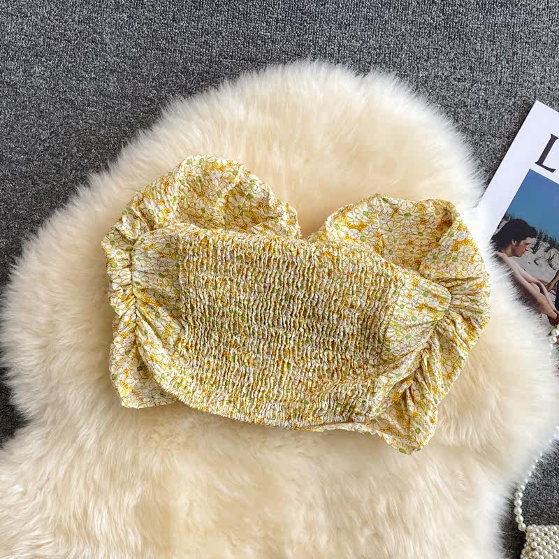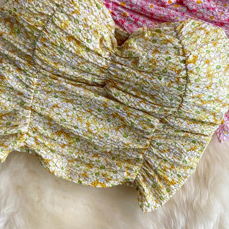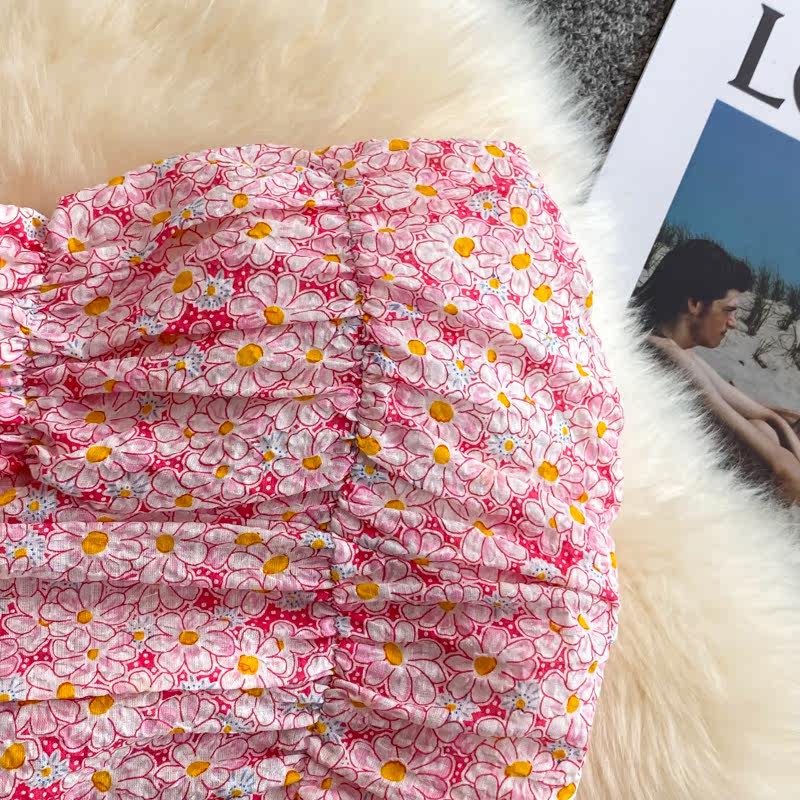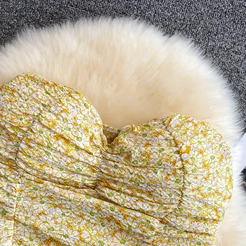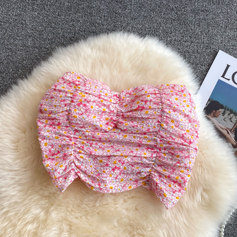 Майка топ, летние бретели, топ без лямок, сексуальная короткая базовая майка пуш-ап, французский стиль, цветочный принт, сезон 2021